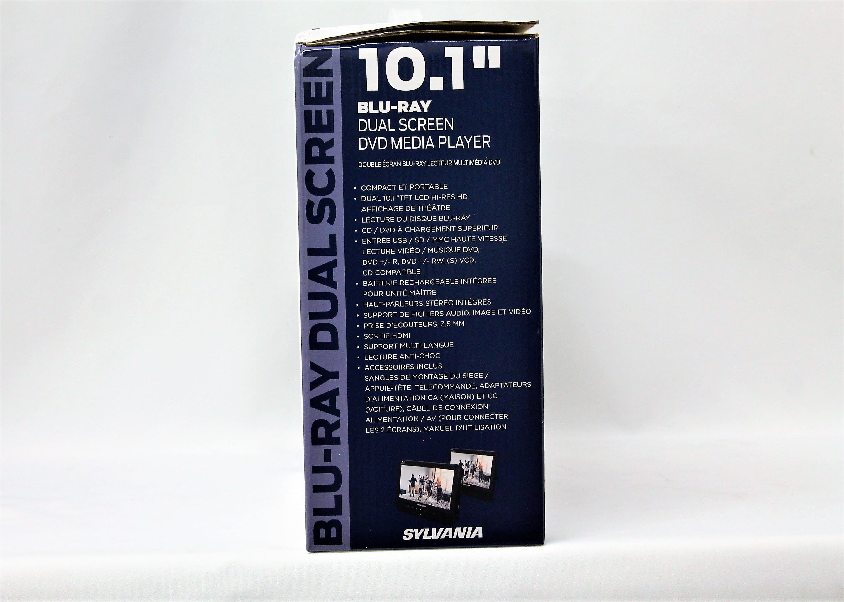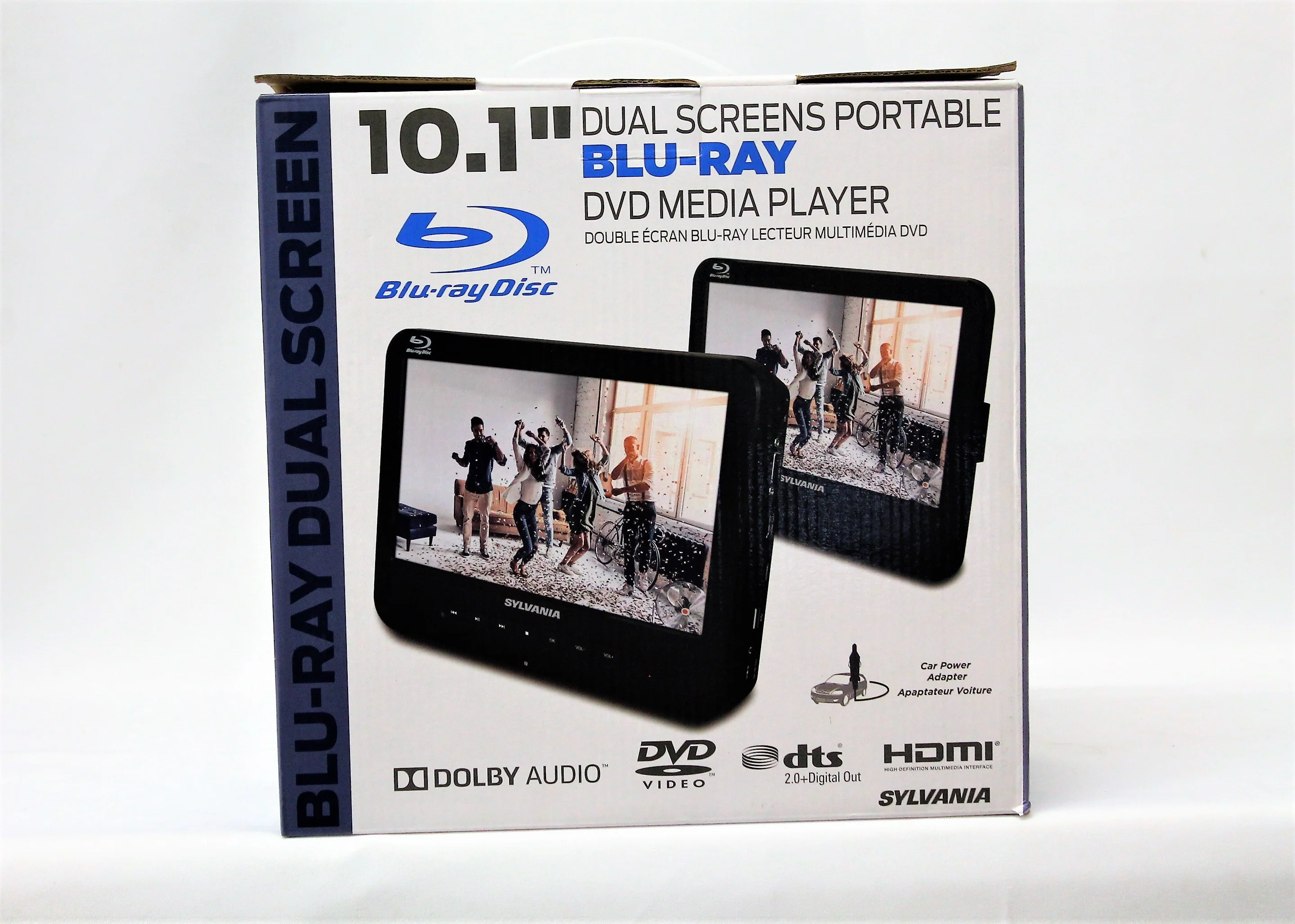 Add entertainment features to your car’s backseat with this two-pack of Sylvania portable DVD Blu-ray(r) players. Enjoy entertainment on the go with this Sylvania dual screen 10-inch portable Blu-ray(r) player. An adjustable Full HD display ensures image detail and clarity, while the top-panel button control center makes for smooth operation. This Sylvania 2 x 10-inch portable Blu-ray(r) player features built-in stereo speakers for quality audio and a built-in rechargeable battery for convenience. Power these headrest-mountable portable players with your vehicle charger or home outlet.