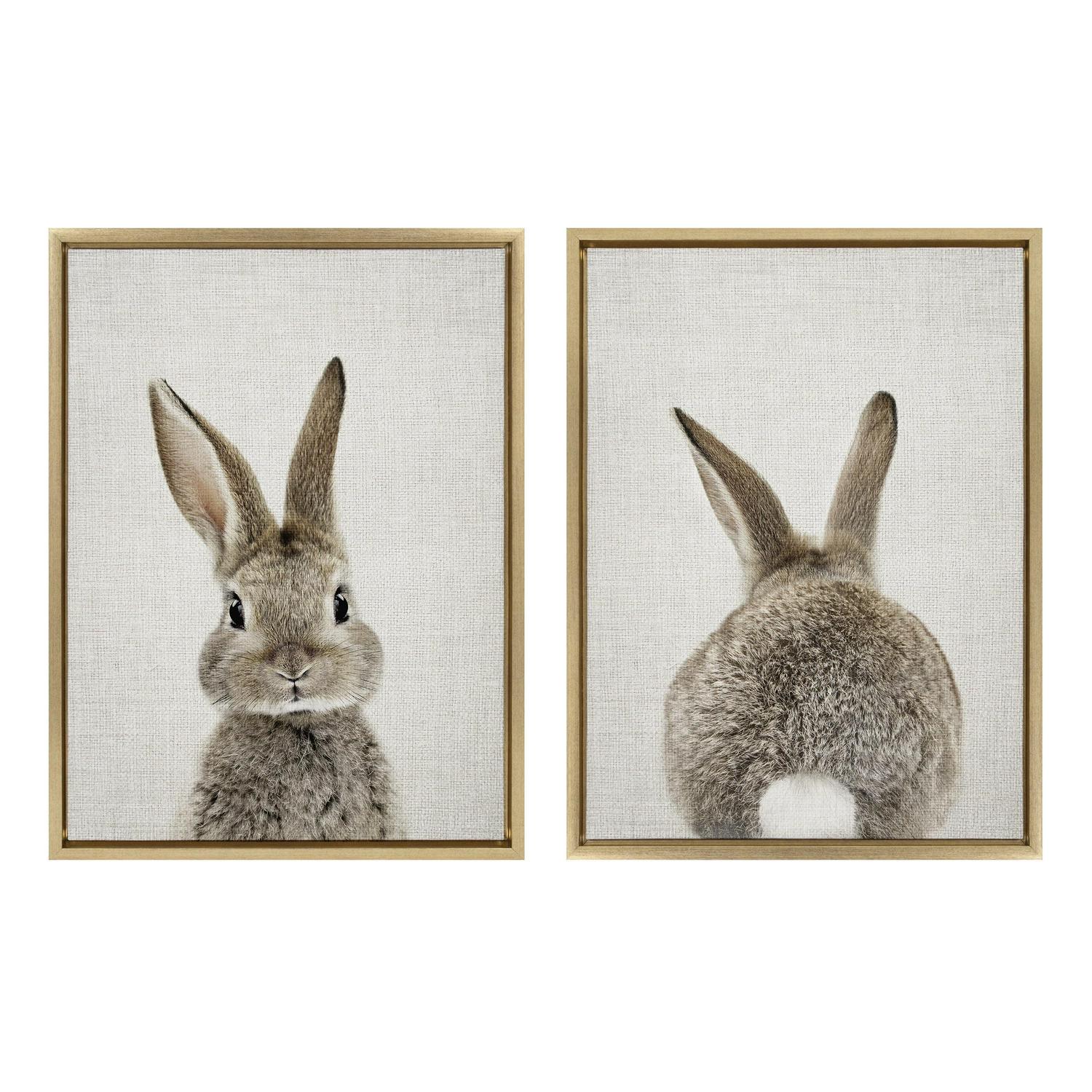 Sylvie Bunny Portrait on Linen and Bunny Tail on Linen 18 in x 24 in Framed Painting Canvas Art Prints, by Kate and Laurel Set of 2
