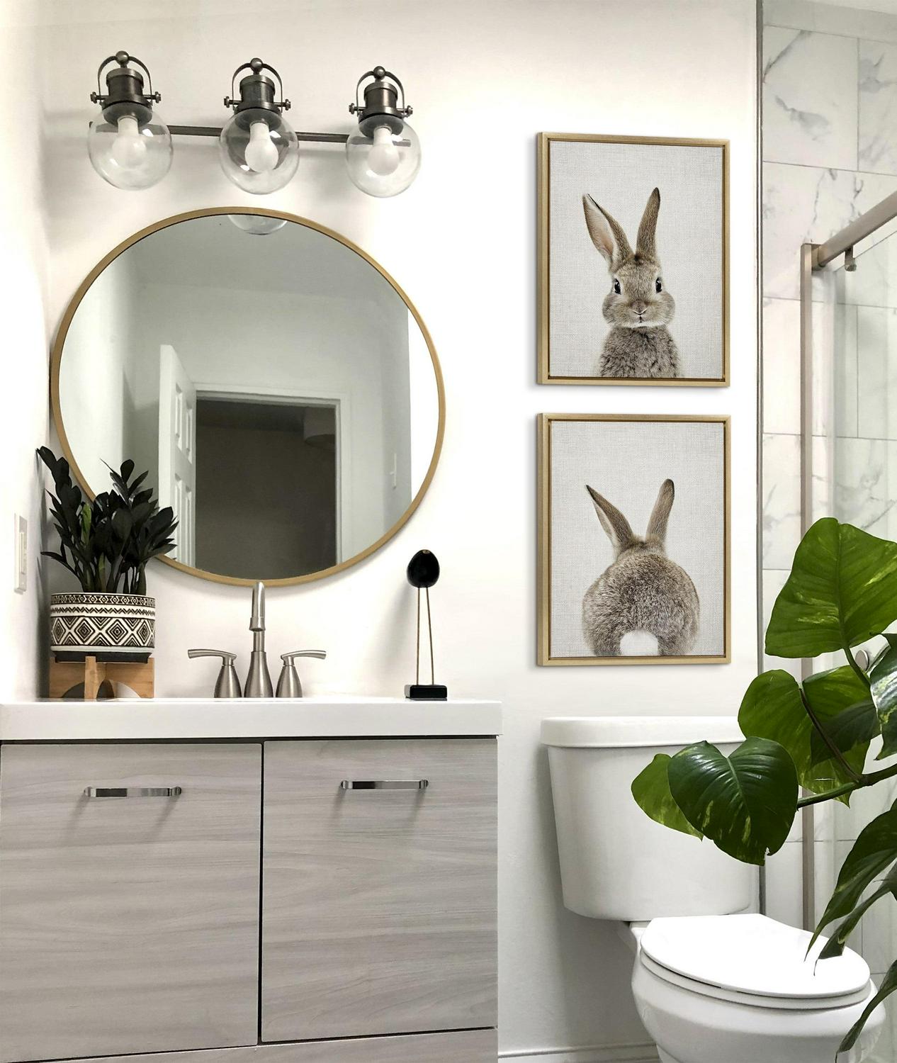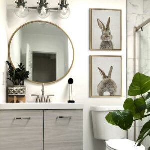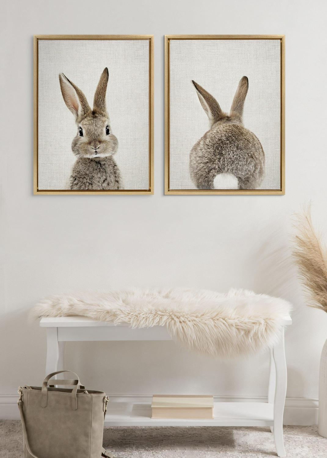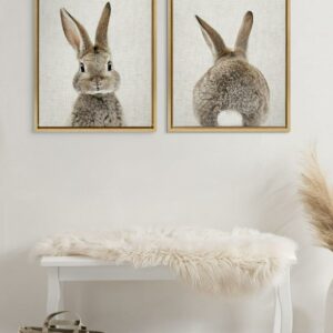 – TRANSITIONAL CANVAS WALL ART: Bunny art on framed high-quality linen-textured canvas. Display dimensions are 18 inches by 24 inches