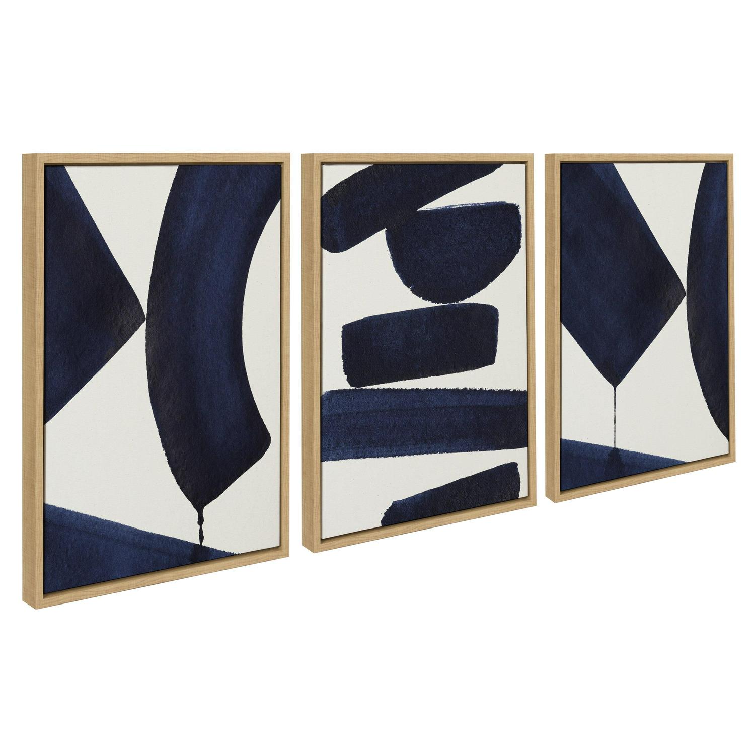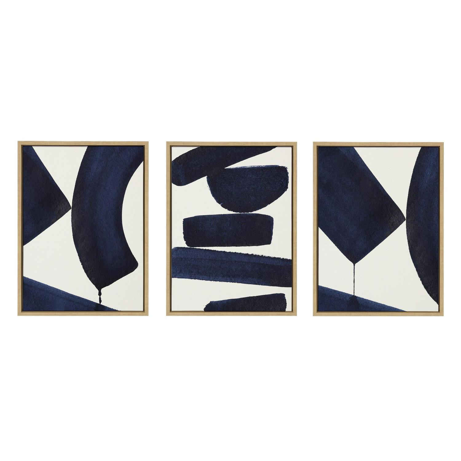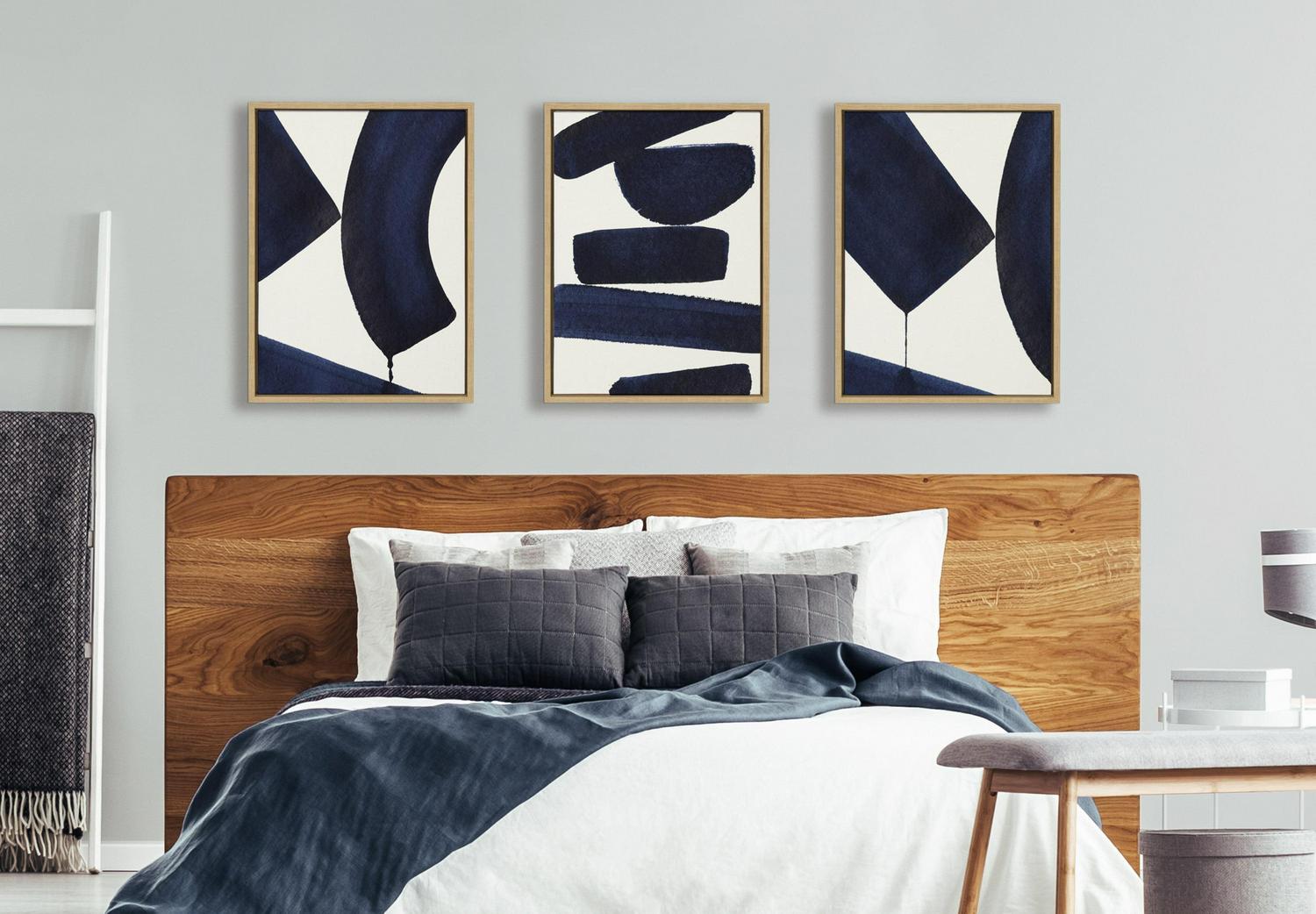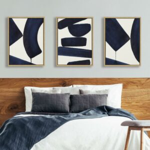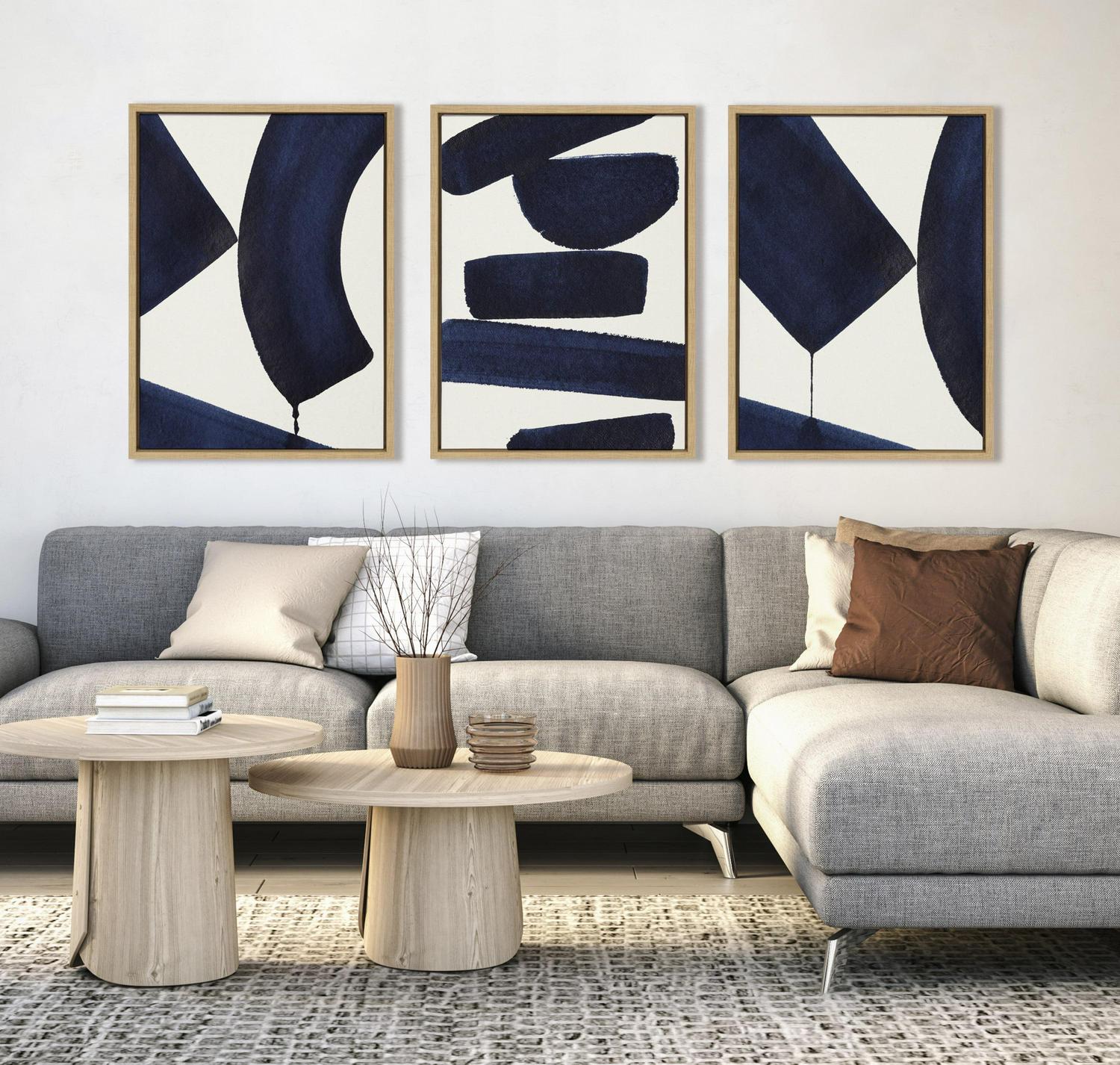 Immerse your home in a modern theme by featuring these navy blue geometric art prints for your wall. Dramatic yet minimalist these prints add that wow to your home. Framed in the USA in Waunakee, Wisconsin, this linen canvas art will be a pleasure to look at every day in your living room, bedroom, nursery, or any room in the home. This art print also makes an excellent gift for birthdays, holidays, or house-warming parties. Printed on linen-textured canvas and framed with a lightweight polystyrene frame, this wall art has two hangers already attached to the MDF back for easy wall display.