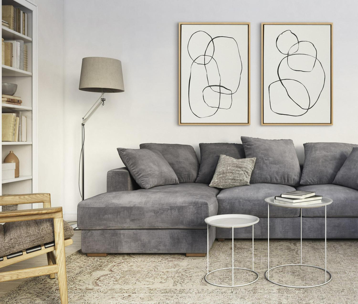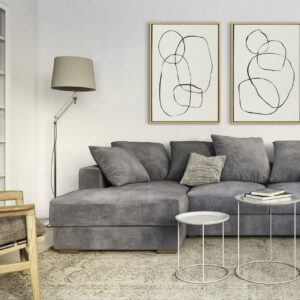 Introduce modern style to your home with this chic abstract print for your wall! Framed in a sleek modern frame, this contemporary design is the perfect art piece to add to your home decor collection. Printed and framed in the USA in Waunakee, Wisconsin, this framed linen textured canvas art set will be a pleasure to look at every day in your living room, bedroom, office, or any room in the home. These art prints also makes an excellent gift for a birthday, holiday, or housewarming party. It has two hangers already attached for easy wall display.
