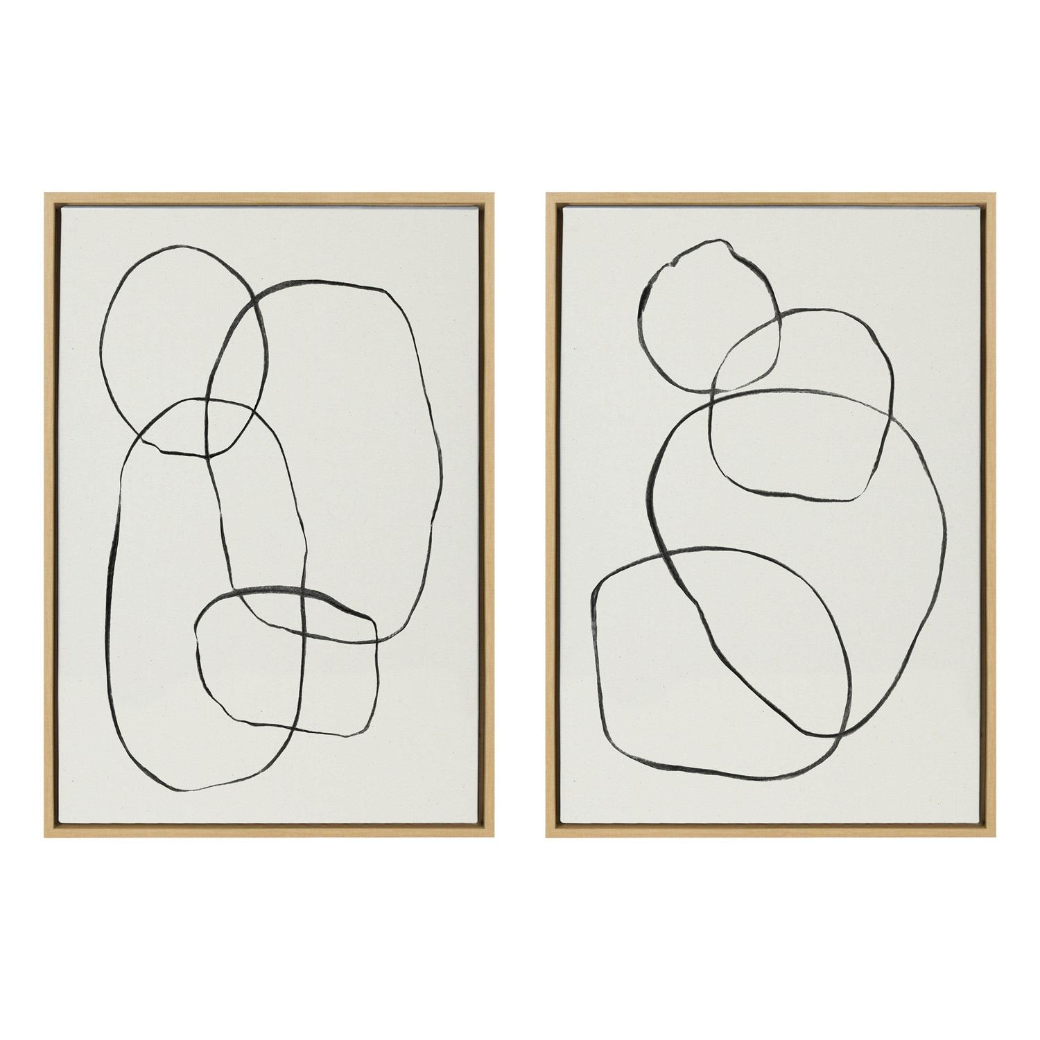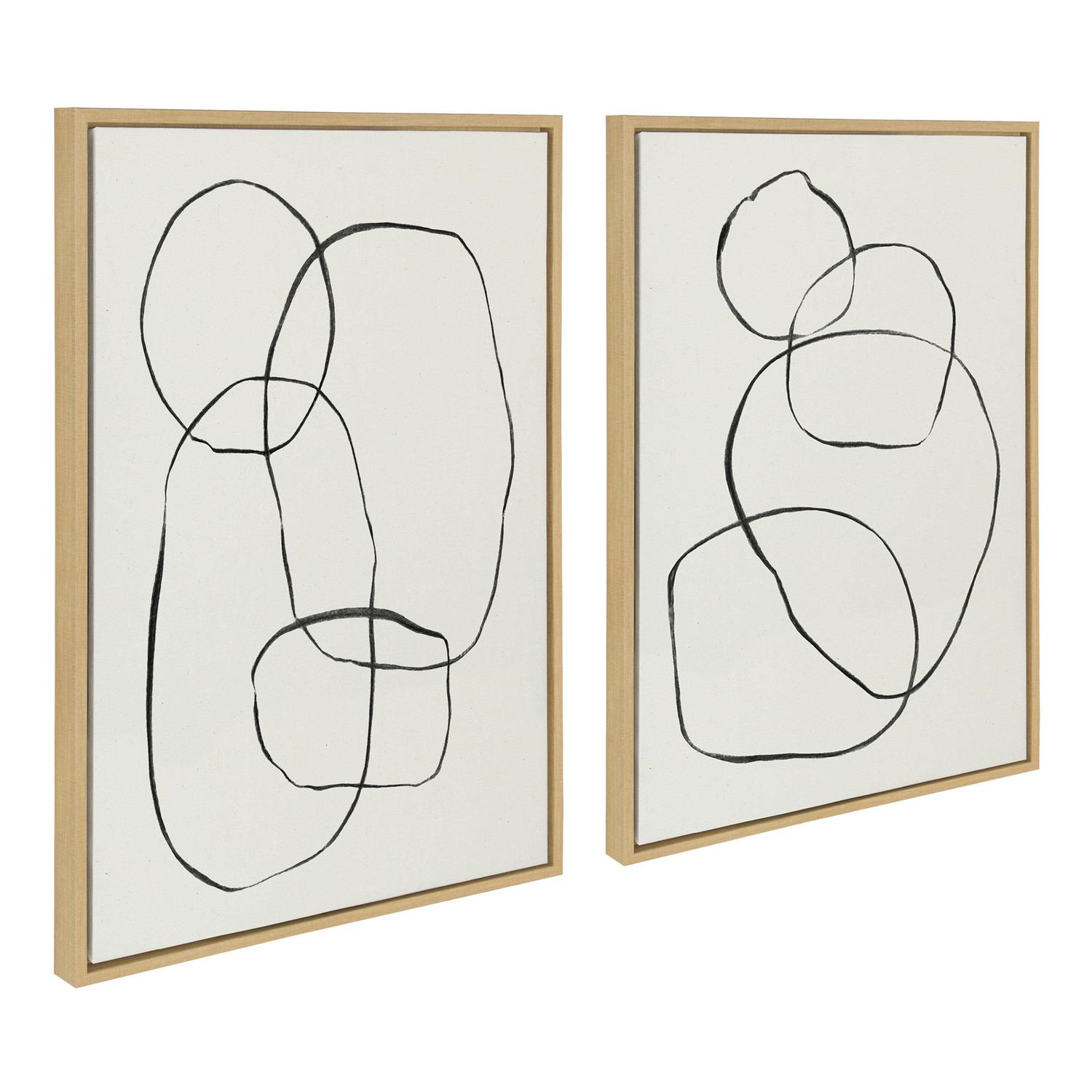 Sylvie Modern Circles and Going in Circles Linen Textured 23 in x 33 in Framed Painting Canvas Art Prints, by Kate and Laurel Set of 2