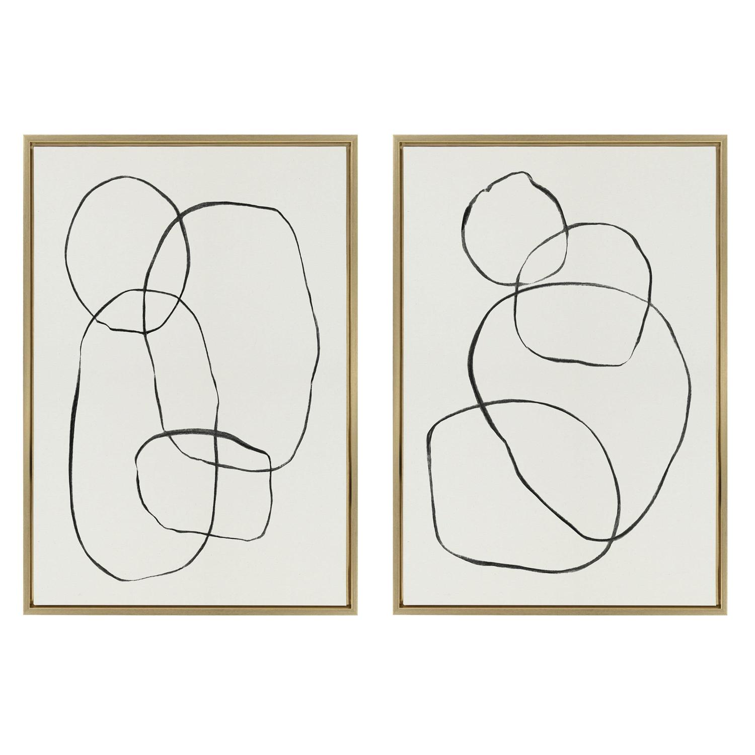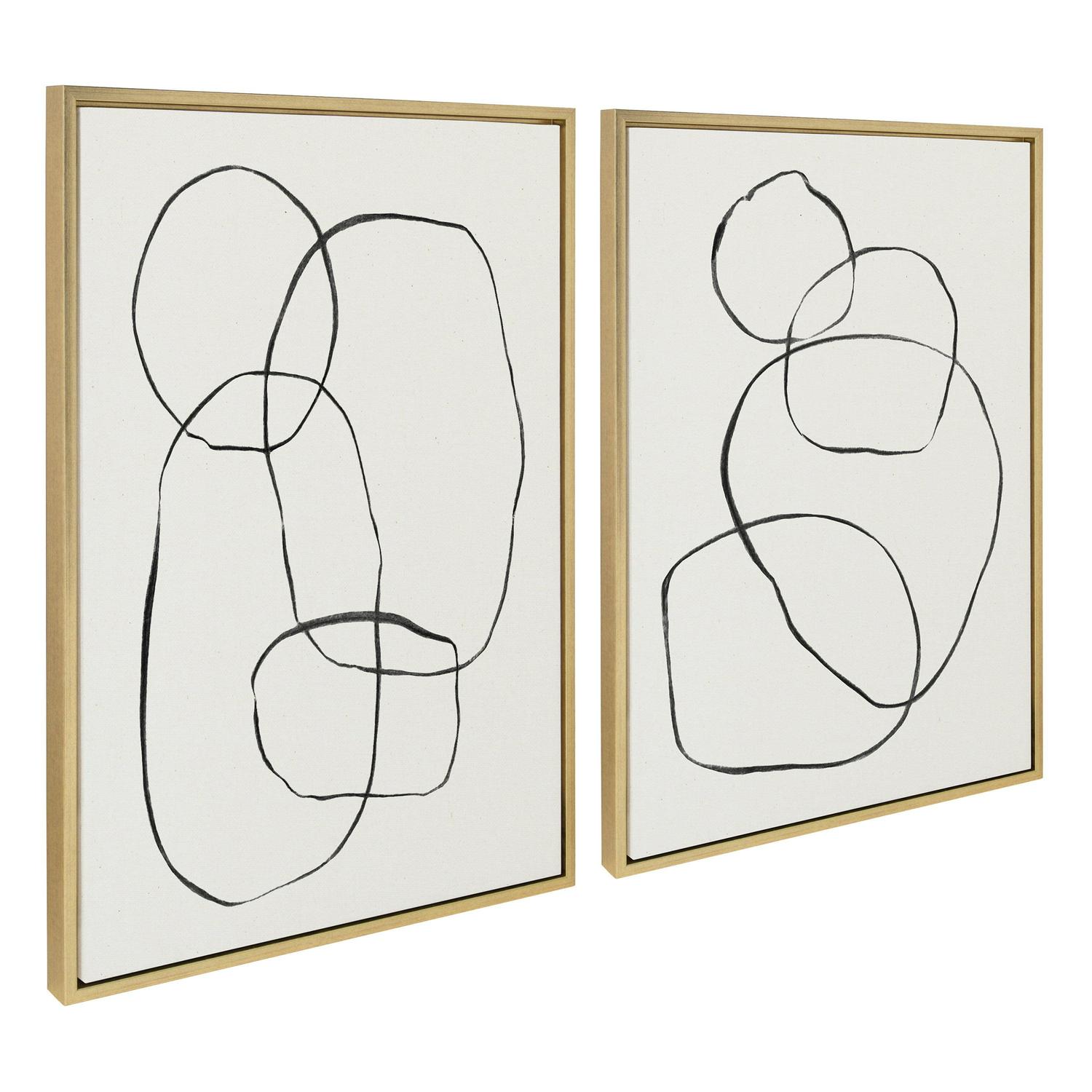 Sylvie Modern Circles and Going in Circles Linen Textured 23 in x 33 in Framed Painting Canvas Art Prints, by Kate and Laurel Set of 2