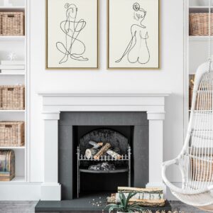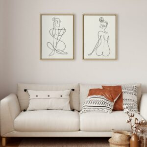 – TRANSITIONAL CANVAS WALL ART: Neutral minimalist women drawing art on framed high-quality linen-textured canvas. Display dimensions are 18 inches by 24 inches