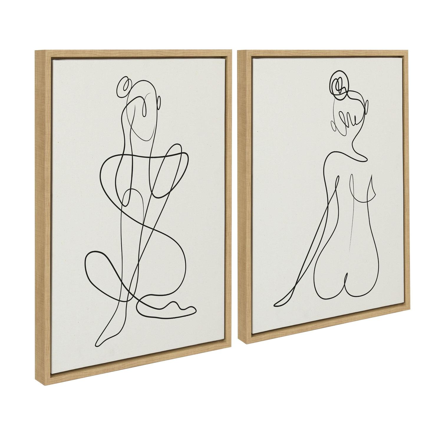 Sylvie Thinking of You Line Art and Sitting Beauty 18 in x 24 in Framed Painting Canvas Art Prints, by Kate and Laurel Set of 2