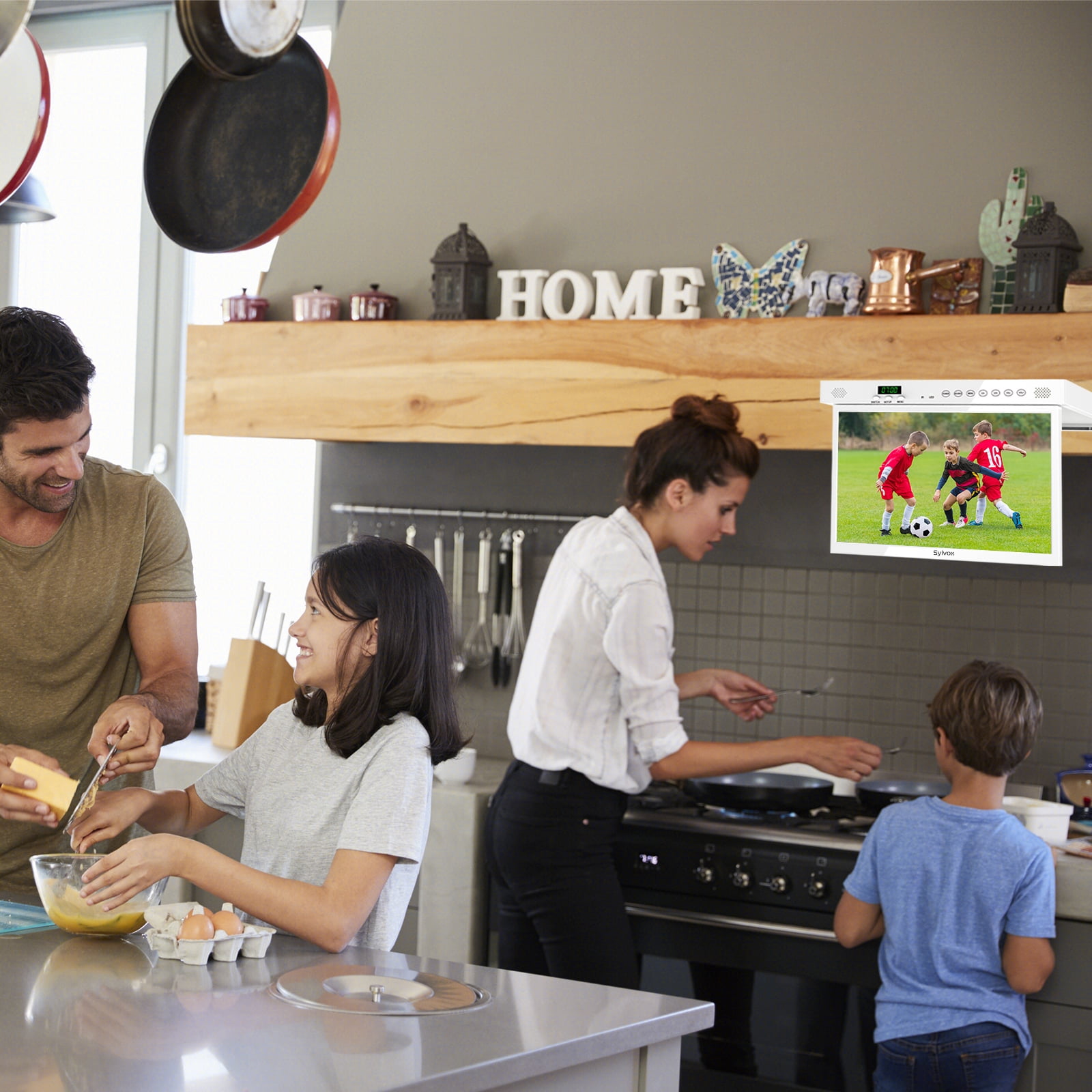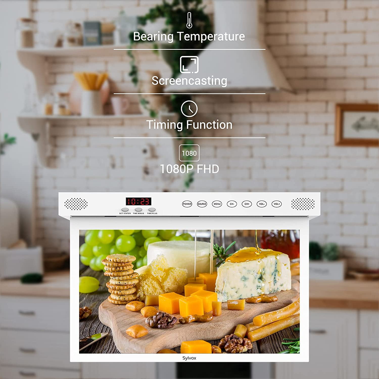 SYLVOX 15.6″ Smart Kitchen TV, Flap-Down Under Cabinet TV, 1080P FHD Smart Android TV with Google Assistant