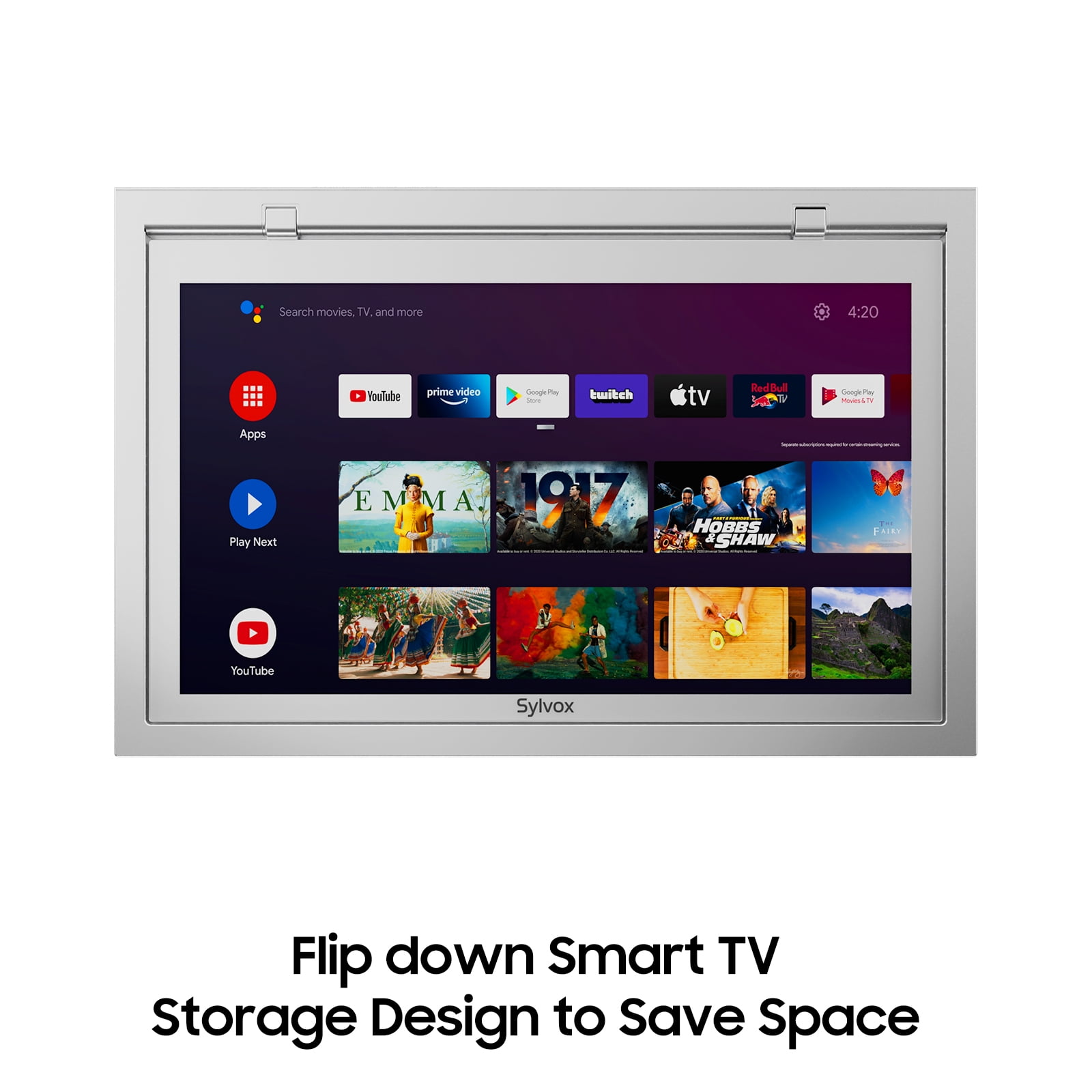 SYLVOX 15.6″ Kitchen TV, 1080P FHD Under Cabinet TV, Flap Down Smart Android TV Built-in Google Play, Google Assistant (Silver)