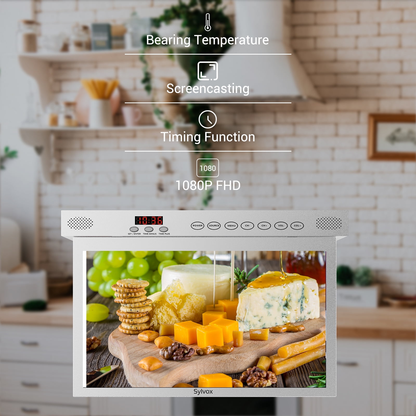 SYLVOX Under Cabinet Kitchen TV is designed for the kitchen, the screen can be rotated from different angles. And equipped with Android 11.0 system with 1.5G+8G memory, you can download the apps you want anytime. Built-in Bluetooth 5.0, 2.4+5G full-band WiFi, 1.5G+8G memory, 1080P, Under Cabinet kitchen TV with LED clock display, timer alarm function, kitchen TV remote control supports voice, IR, Bluetooth control function, supports HBBTV, rear interface. ✿Specifications Build in Google Play & Google Assistant 3 in 1 remote control (Infrared, Bluetooth, Voice) Support Android and Apple OS screen casting Built-in Bluetooth 5.0, 2.4+5G full-band WiFi Flap-Down kitchen TV Screen flap down angle (90°) Screen rotation angle (360°) 1920×1080 FHD TV Wide View Full HD TV: 178°/178° Touch keys Thin and light Timing function (15-60 minutes optional) Operating temp -4℉ to 113℉ (-20℃ to 45℃)