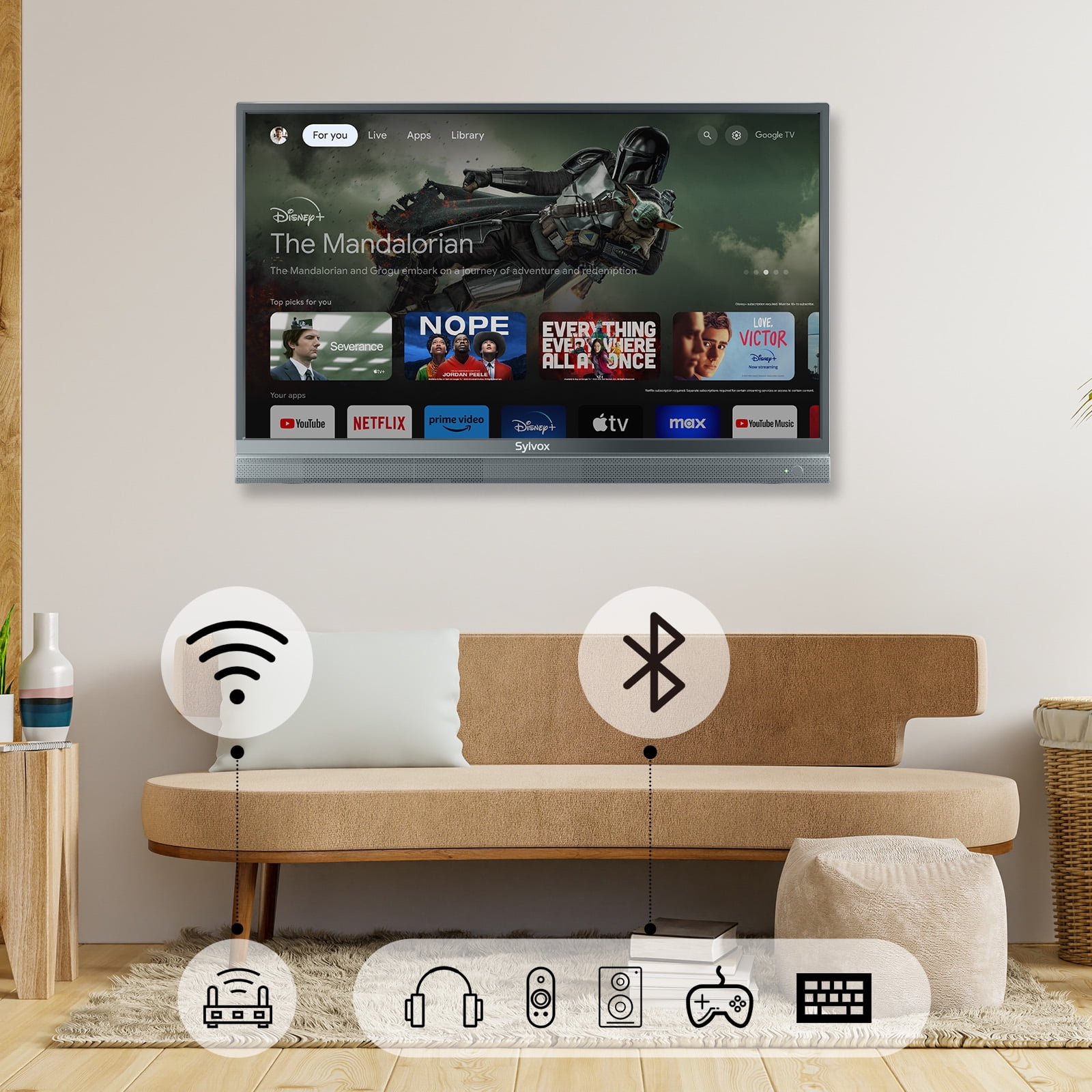 SYLVOX Smart TV Designed for Travel SYLVOX Vehicle series RV TV runs newest Google system. Google TV allows you free download apps, cast videos and pictures from other devices and easily find what to watch through your voice remote. News, sports, movies, music, or tv programmes, are all at your fingertips. Multiple protection design withstand the vibration generated during the driving of the RV. Support wall mount and standing. This 12V smart TV perfect for motorhome, camper, camping van, caravan, boats, bedrooms, kitchens, and home use.