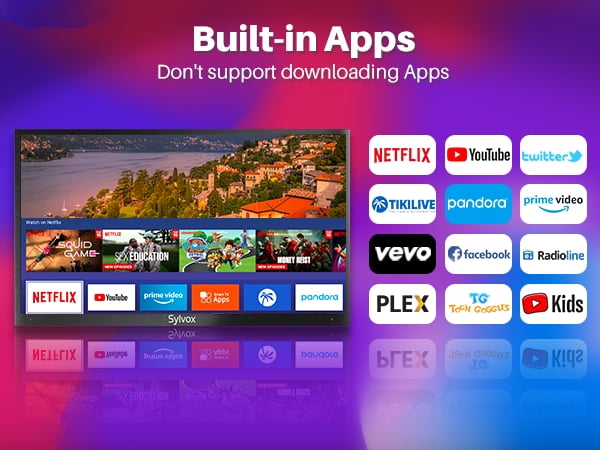 8. Built-in genuine certified Netflix, YouTube, Prime Video, Tikilive, Pandora, Twitter and Facebook.
