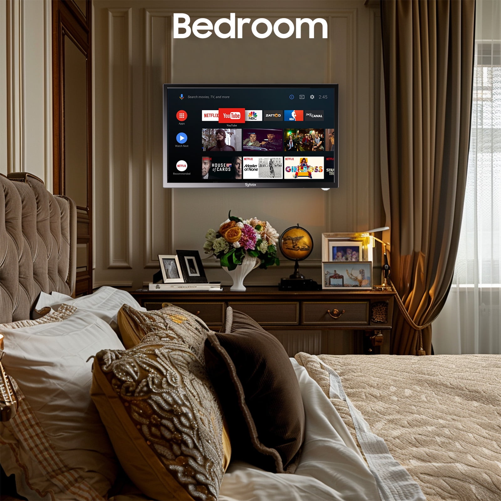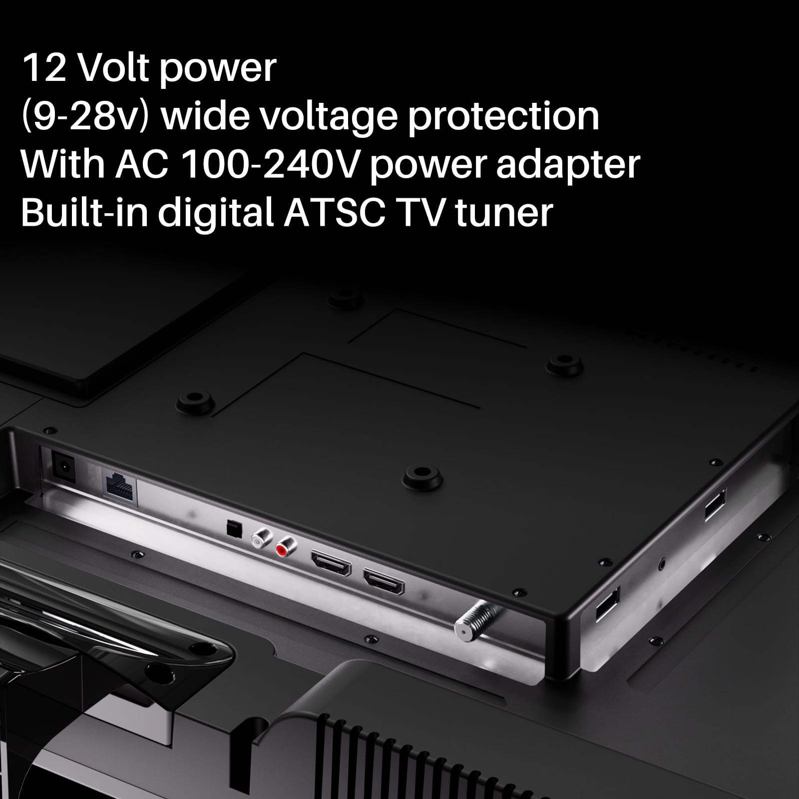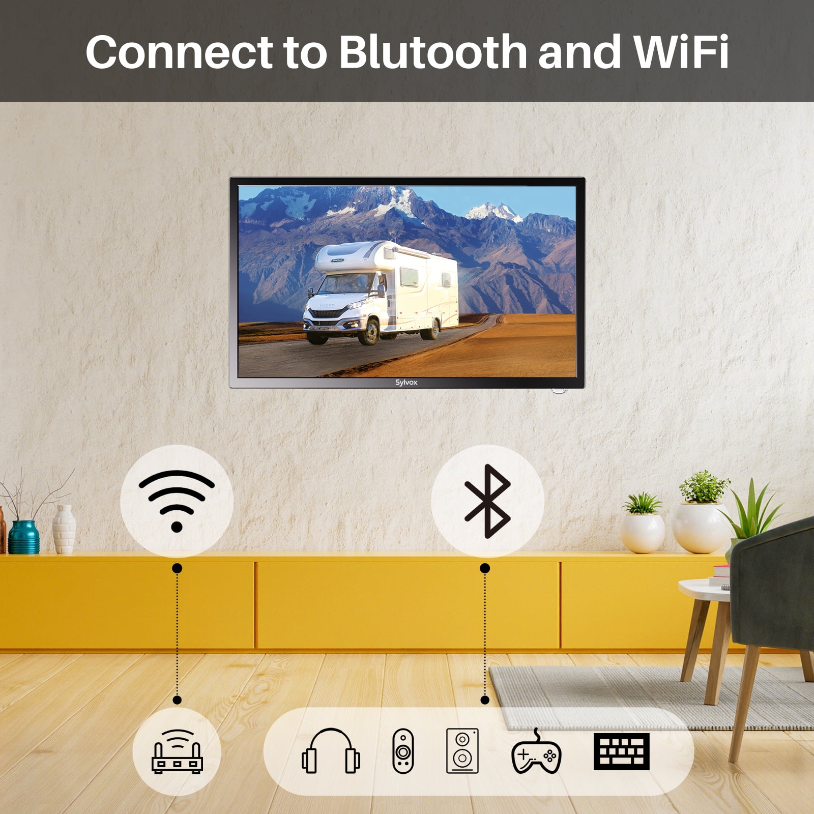 Sylvox 12V TV Designed for Travel (Trailer Series) Sylvox Trailer series RV TV runs Android 11.0 with Google Play allows you download apps. Build in DVD Player and HI-FI sound box. Multiple Protection design withstand the vibration generated during the driving of the RV. support wall mount and standing. This 12v smart TV perfect for motorhome, camper, camping van, caravan, boats, bedrooms, kitchens, and home use.
