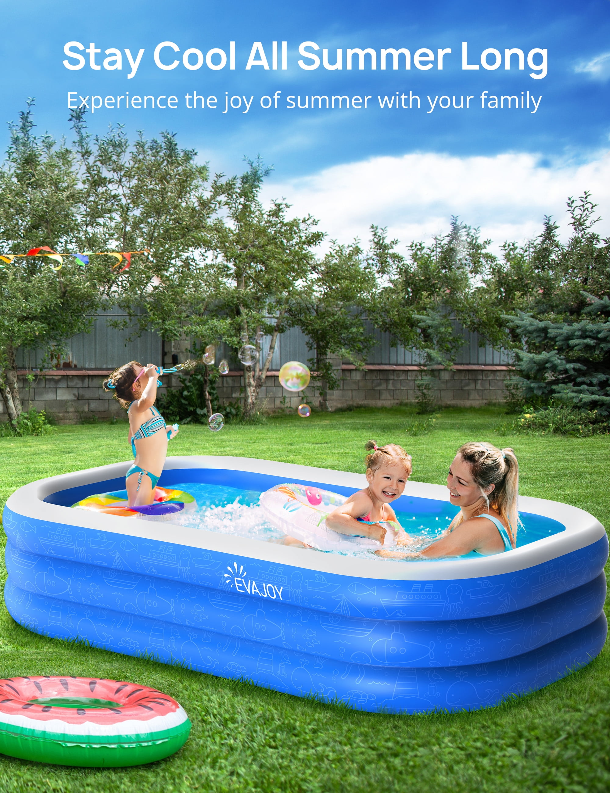TaoTronics Inflatable Swimming Pools, 78” x 72” x 20” Blow up Swimming Pools, Kiddie Pool Large Size Thickened Blow up Swimming Pools Play Center for Kids Children Family Outdoor Garden Backyard