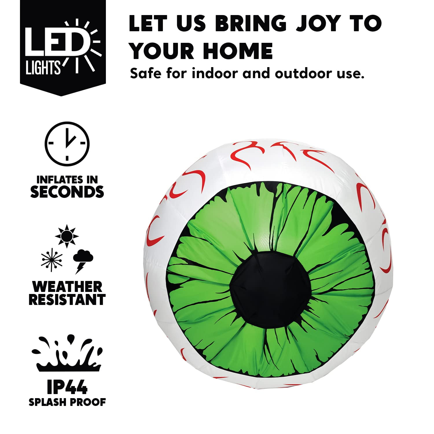 Huge Halloween Inflatable Eyeball LED Light Up Bloodcharge Eyeballs Blow Up Yard Decoration for Halloween Party Indoor,Outdoor,Garden,Lawn,Yard Decoration.Perfect for Halloween outdoor yard garden decorations,trick or treat event decoration, Halloween night event, Halloween night event, Halloween Costume Party, Haunted House Decor, and More! Note: SYNCFUN is a sub-brand belonging to Joiedomi.