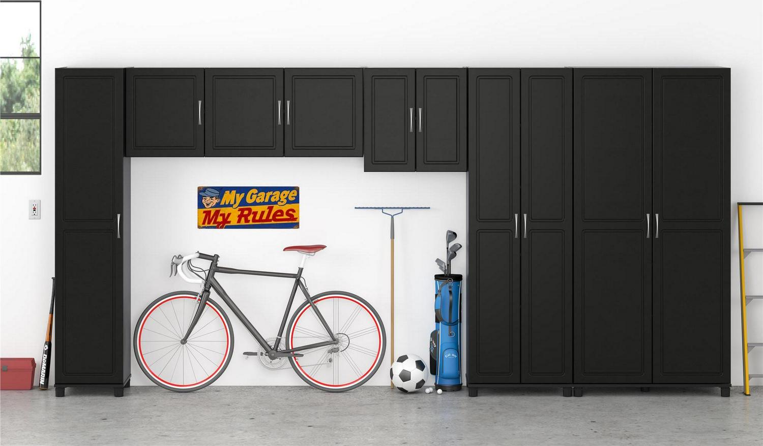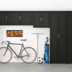 – The Systembuild Evolution Kendall 36″ Utility Storage Cabinet adds extra storage to any room