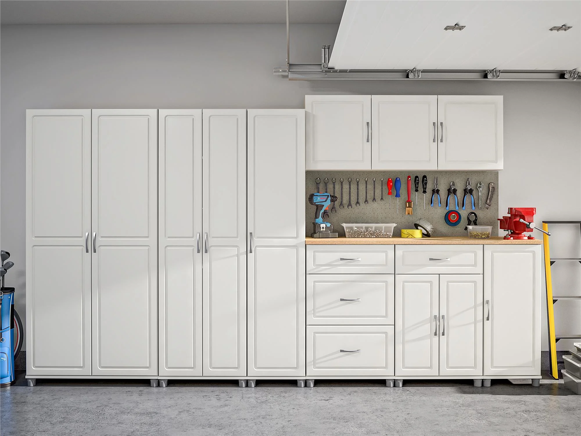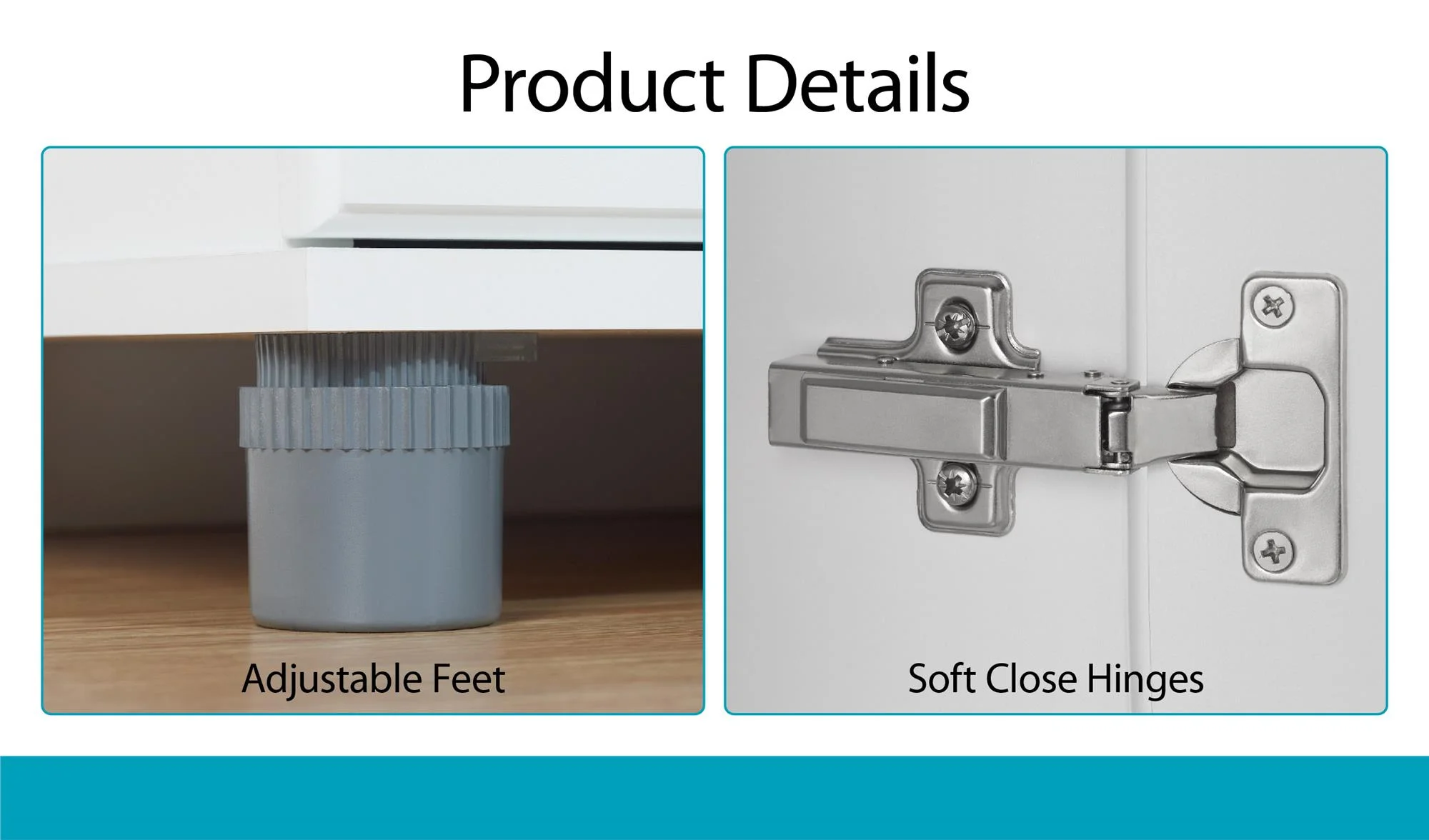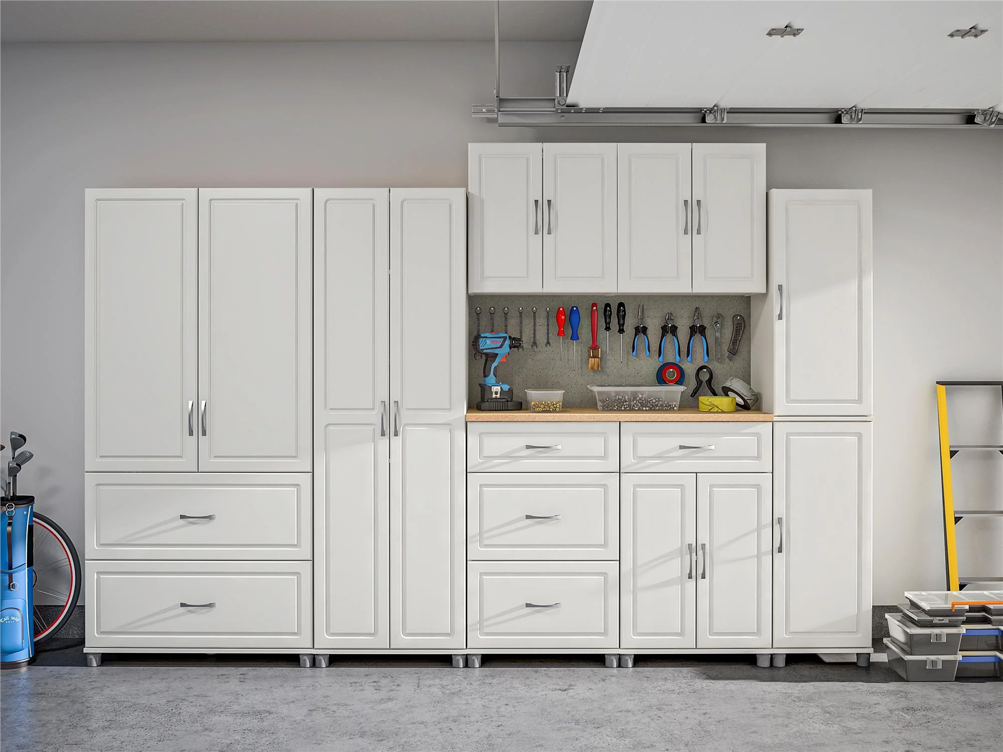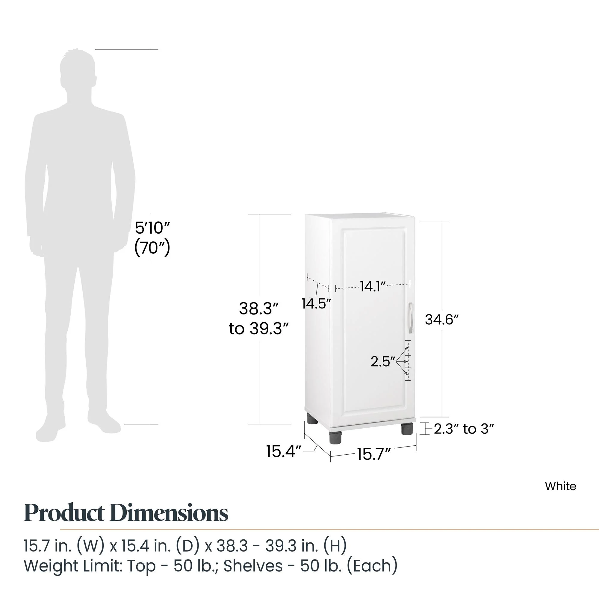 Keep your room clutter-free and organized with the Systembuild Evolution Kendall 16″ Stackable Storage Cabinet, designed specifically to help you maintain a neat living space The cabinet is equipped with two adjustable shelves, allowing you to customize the storage configuration based on your specific needs. Whether you have tall items or shorter belongings, you can easily adjust the shelves to accommodate them Maximize your storage options by stacking two of these Storage Cabinets on top of each other, creating additional vertical space for your belongings. Each cabinet is sold separately, giving you the flexibility to add more storage as required With assembled dimensions of 38 ¼” in height, 15 11/16″ in width, and 15 3/8″ in depth, this Storage Cabinet boasts a narrow design that is perfect for smaller spaces such as kitchens or laundry rooms. You can efficiently utilize tight areas while still enjoying ample storage capacity The 16″ Storage Cabinet is part of the Systembuild Evolution collection, allowing you to coordinate it with other pieces in the collection. This enables you to create a cohesive and customized storage solution that seamlessly fits the aesthetic and functional requirements of any room in your home 16″ Storage Cabinet coordinates with other pieces in the Systembuild Evolution Ikendall Garage Storage collection, providing a customized storage solution for any room in your home ArmorCoat surface protection provides superior water, stain and scratch resistance Height adjustable feet allow leveling on any floor and keep cabinets away from standing water Soft-closing door shuts quietly and avoids slamming Concealed 6-way Euro hinges on the door create a finished look 1-Year Limited Warranty Included