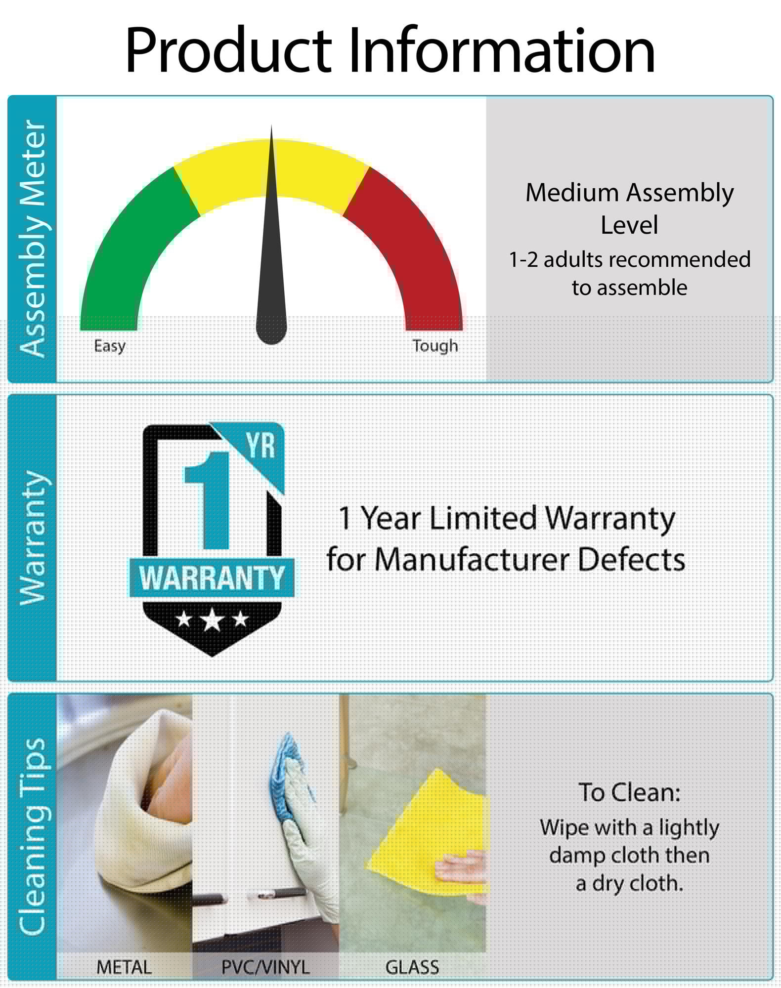 – Assembled dimensions: 74 5/16″h x 35 11/16″w x 15 3/8″d