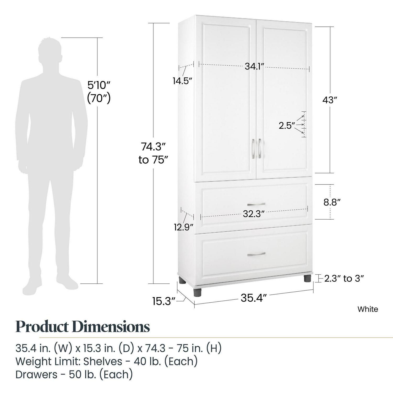 Satisfy all your storage needs with the Systembuild Evolution Kendall 36″ 2 Drawer/2 Door Storage Cabinet. Whether you need a place to store kitchen bowls and appliance or somewhere to place extra towels and bed sheets, this Cabinet is the perfect choice. Behind the doors, 3 shelves offer plenty of room for items that need a home. Two of the shelves are adjustable to meet your specific storage needs. The 2 roomy drawers provide additional easy-access storage space. The 36″ 2 Drawer/2 Door Storage Cabinet features a crisp white finish that creates a refined, clean look in your home. Use this piece as a stand-alone item, or combine it with additional Systembuild Evolution Kendall storage items to create the perfect storage solution for your home. Systembuild Evolution 36″ 2 Drawer/2 Door Storage Cabinet requires assembly upon delivery.