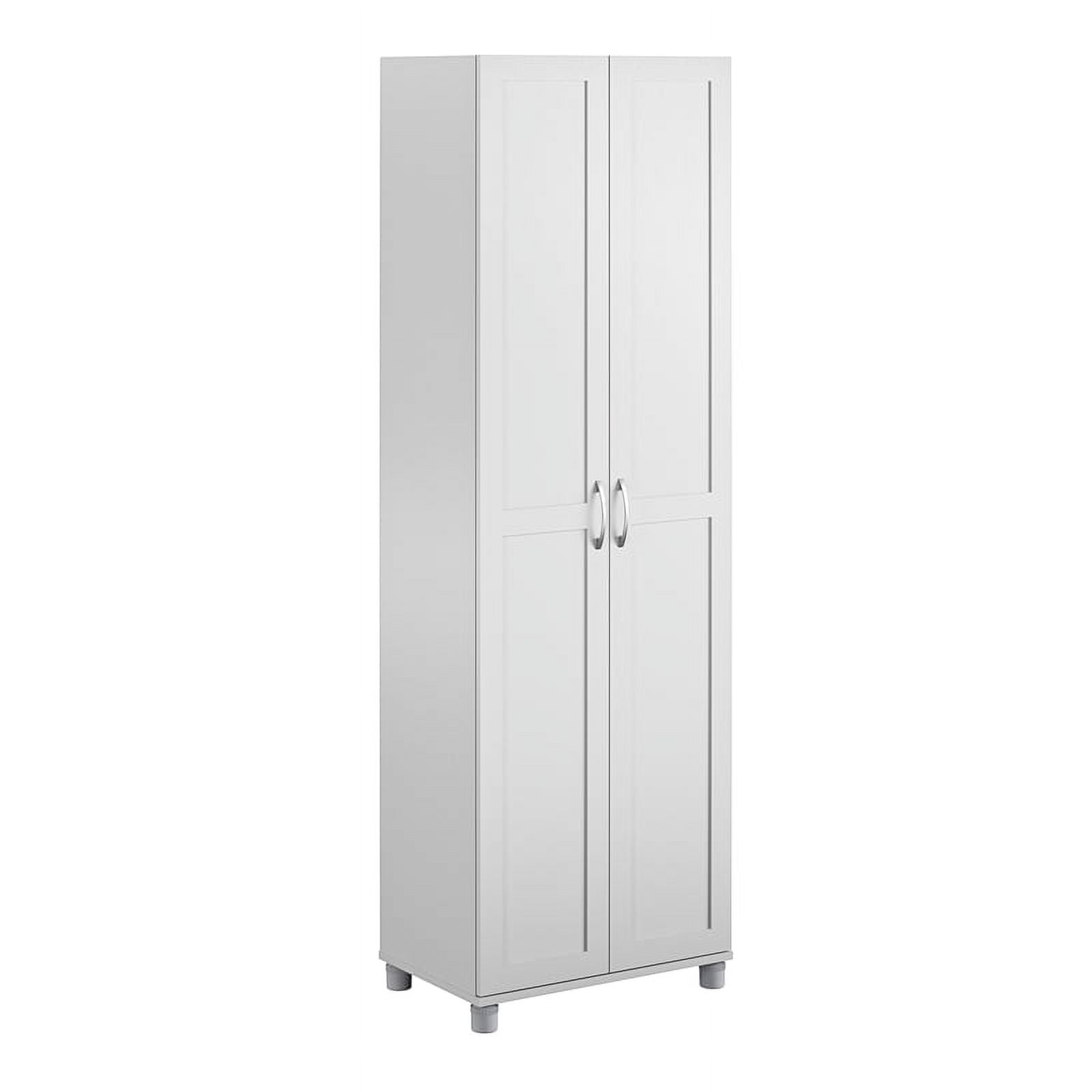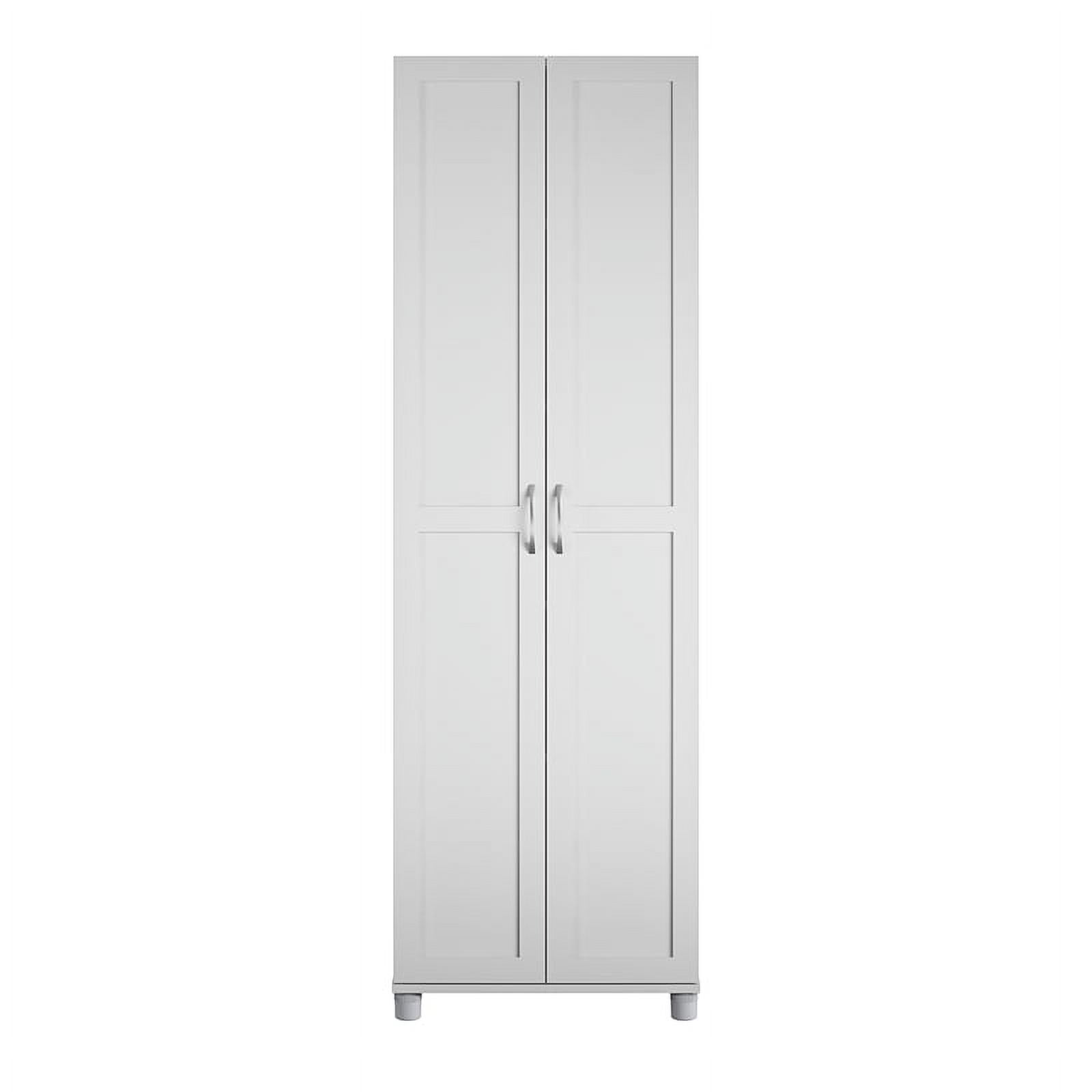The Systembuild Evolution Lory Framed 24″ Utility Storage Cabinet adds extra storage to any room Made of laminated particleboard, the neutral woodgrain finish can be added to any style and decor without breaking the bank The 5 shelves, 3 adjustable, can store and organize your cleaning supplies and even kitchen pantry items. Adjustable feet keep your Cabinet level on uneven floors Complete your room with the entire Lory Framed collection (each sold separately) The Storage Cabinet ships flat to your door and 2 adults are recommended to assemble. Each shelf will hold up to 35 lbs. Assembled dimensions: 74.29-75″H x 23.7″W x 15.39″D Wall anchor kit is included to prevent tipping injuries and keep your family safe 1-Year Limited Warranty Included