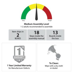 – Ships in 2 boxes and requires assembly. Two adults recommended to assemble. Once assembled, the Wardrobe measures to be 47.36″W x 19.69″D x 74.27″H. Assembled weight: 156 lbs.