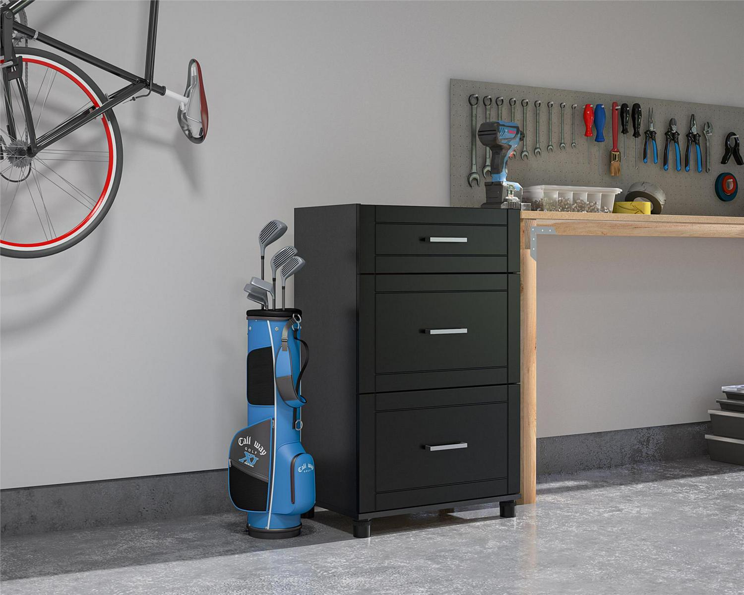 – Upgrade your storage capabilities with the Systembuild Evolution Sylvan 24″ 3 Drawer Base Garage Storage Cabinet