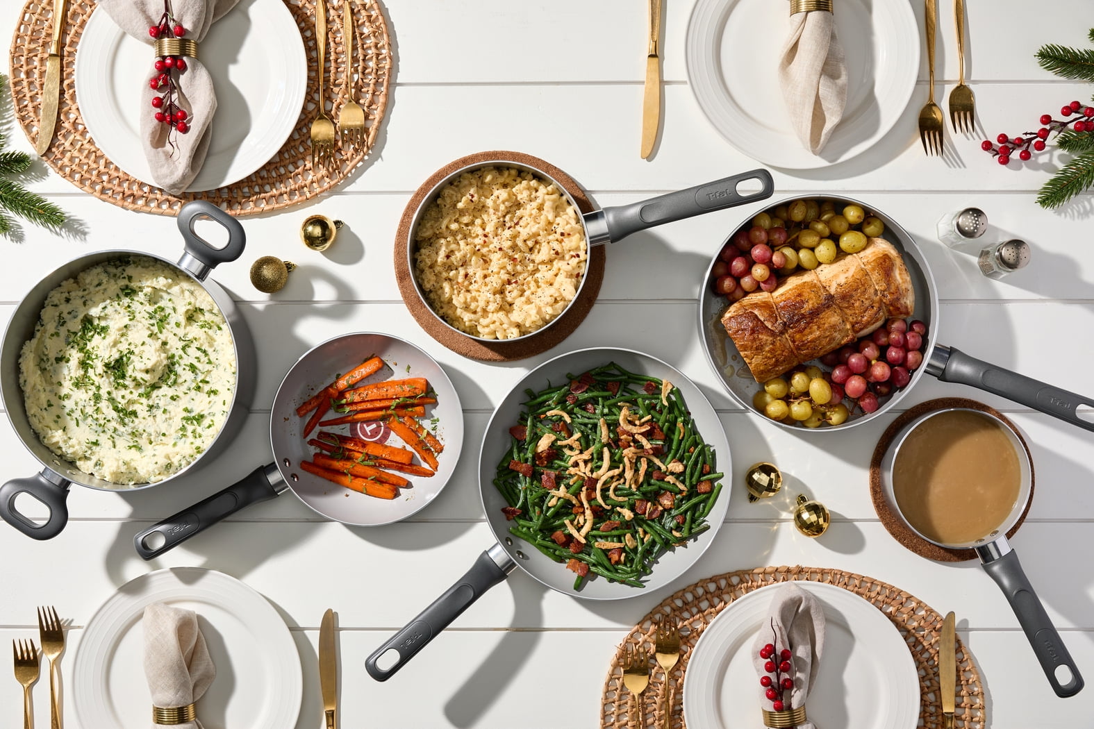 Add a touch of color and style to your kitchen our with T-fal Healthy Chef Ceramic cookware line, crafted with 100% recycled aluminum body and a ceramic non-stick interior for healthy and delicious meals. Featuring Thermo-Spot Technology, even heat base and comfortable handles to make cooking a breeze.
