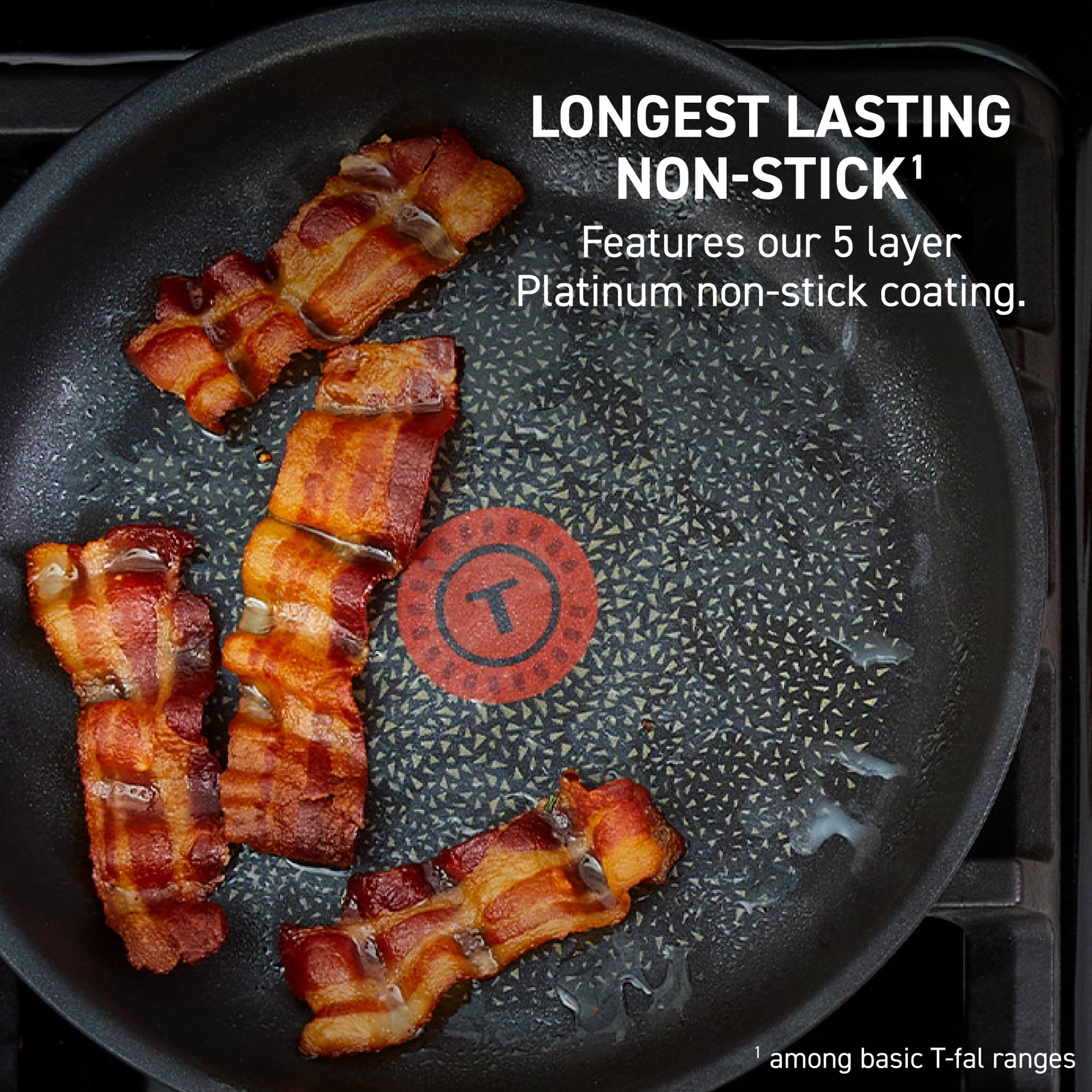 All You Need, Stacked Up Neatly: The set includes 3qt covered Saucepan, 3.5qt covered Sautepan, 11 inch Frypan, 1 detachable handle, and 2 storage lids. Stack height without handles and lids is 4.1 inch. Take Back Your Shelf Space: Say goodbye to cluttered cabinets. Stackable design saves up to 50% more space compared to T-fal fixed handle sets. This all-in-one set for cooking, baking, and serving is best for small kitchens, RVs, and other limited spaces. Oven to Table Convenience: Cook and serve from the same pan with detachable handles, effortlessly transitioning from stove to oven. Storage lids on saute pan and saucepans facilitate refrigerating leftovers, simplifying your culinary experience. Superior Performance: No need to worry about food sticking or burning, thanks to our Platinum Non-stick coating. Thermo-Spot Technology informs you when pans are properly preheated, making your cooking adventures enjoyable and stress-free. Dishwasher-Safe and Hassle-Free: Spend less time cleaning and more time enjoying meals! Detach the handle and place the set in the dishwasher for easy cleanup. Induction base for even heat distribution suitable for all cooktops. Limited lifetime warranty.