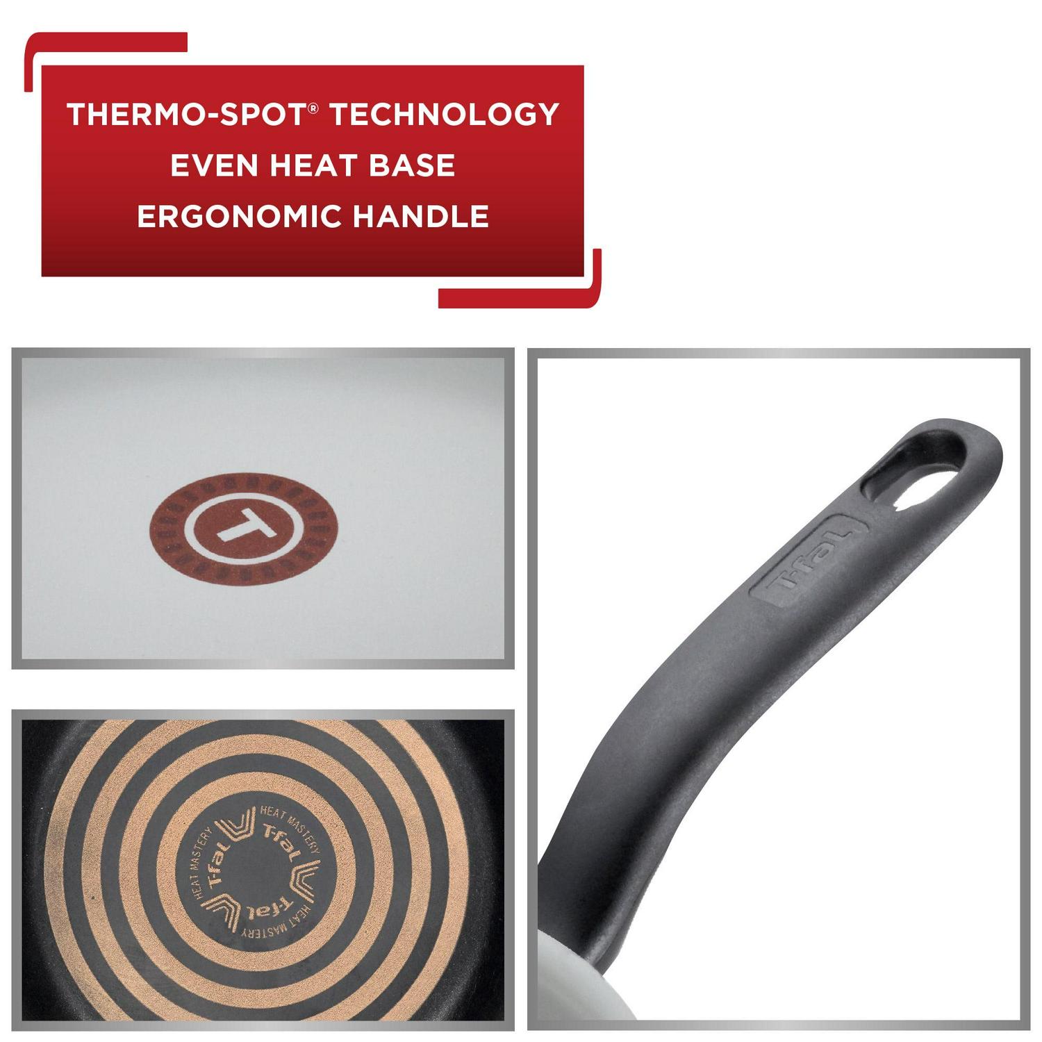 – THERMO-SPOT TECHNOLOGY: Unique heat indicator that turns solid red to show when pans are properly preheated to start cooking
