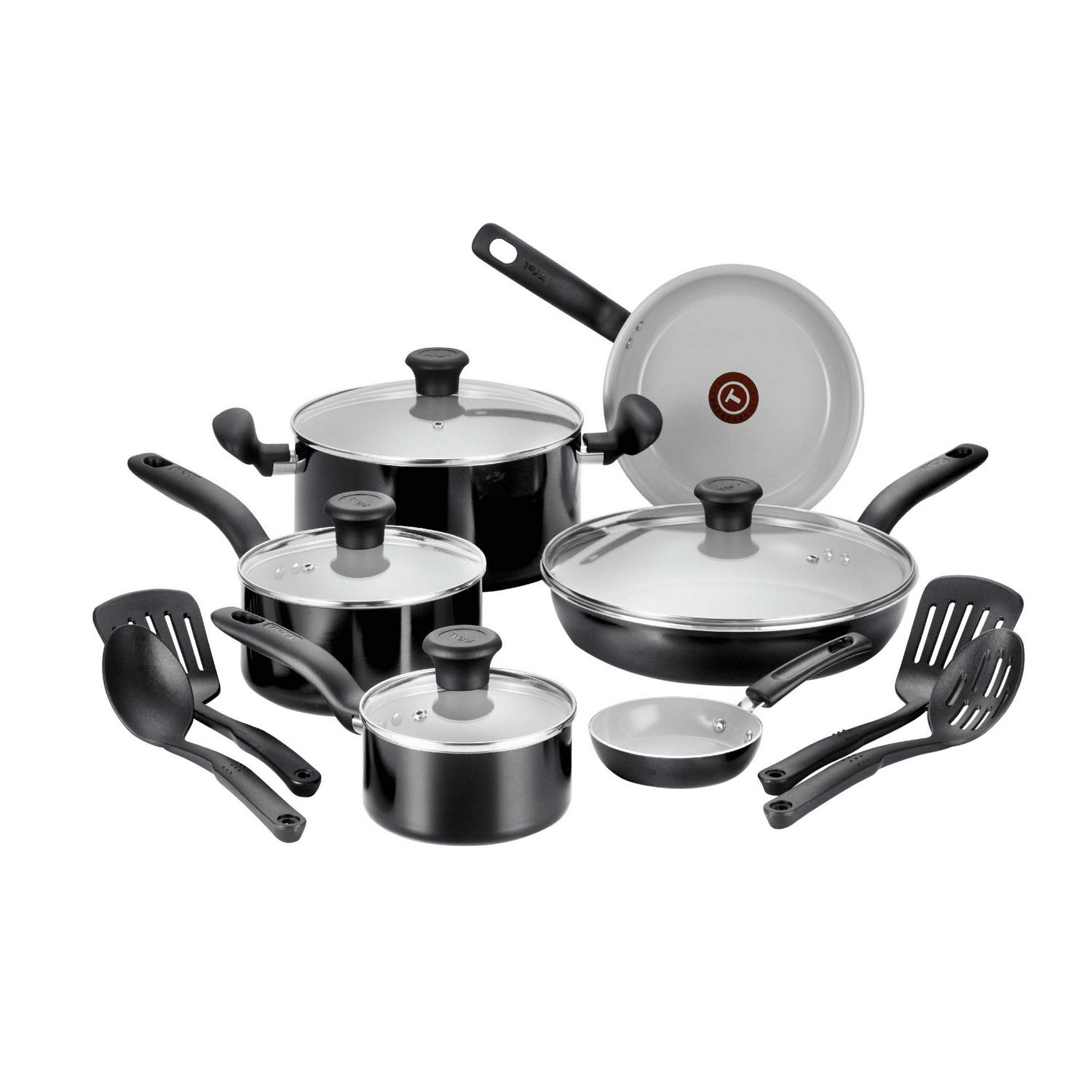 T-Fal Initiatives Ceramic Cookware 14 piece Set Black