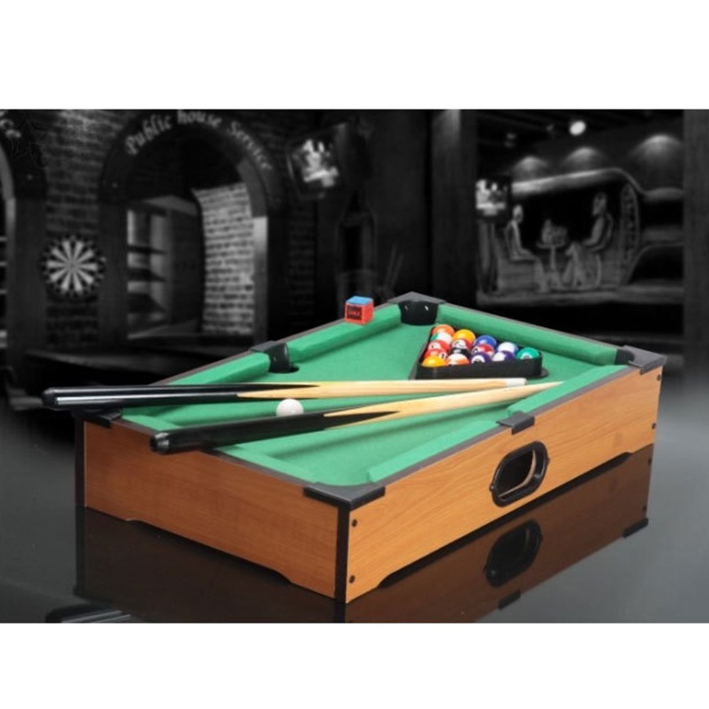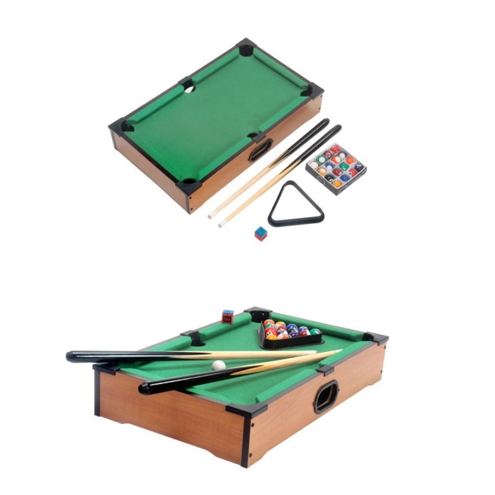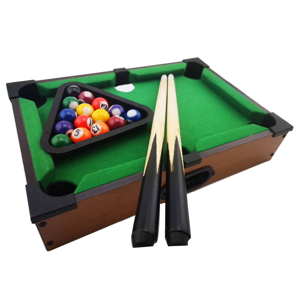 feature: Billiards Pool Table Desktop Simulation Billiards Novelty Pool Table Set Children Play Sports Ball Sports Toys Christmas Gift Includes pool table, 15 colored balls, 1 cue ball, 2 pool sticks Type: Children’s pool table Lightweight, Portable and Durable Specification Material: wooden Size: 36*8*24cm Package Contents: 1* Table Pool (with package) notes: 1. Due to various factors such as monitor brightness, light brightness, etc., the actual color of the item may be slightly different from the pictures displayed on the website. 2. Please allow slight manual measurement deviation in the data.