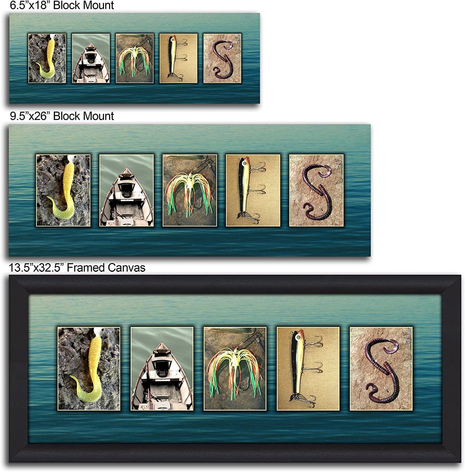 Personalized with your name and customized with your choice of photos, this stunning work of wall art is created using hi-res photography of fishing tackle, lakes, boats, and other fishing gear! Display on the wall your passion for everything fishing. From the photography to publishing to shipping, everything is hand crafted in house at a family owned and operated Colorado art studio. Comes ready-to-hang as a frameless wood block mount or a framed canvas giclée. Each print also includes a certificate of authenticity. All prints are custom made with a super-quick turnaround of 2-3 business days and shipped from Personal Print s Colorado studio. With thousands of 5 star reviews, you can shop Personal Prints artwork with confidence. This custom art is as unique as he is and a perfect gift for a boy s room, for him, for the holidays, for the home, for the family, for the fisherman, or even for the man cave! Wood Block Mount: Our wood block mount is a contemporary and frame-less way to have your print displayed. The image is professionally sealed behind a glossy artist s laminate atop a 3/8 thick wooden block using an acid-free adhesive. The sides of the block are black and comes ready to hang on the wall. Framed Canvas Giclee: Published as a giclee on fine art canvas and finished in a custom wood frame, this personalized canvas wall art is coated with a UV resistant spray and, like all canvas art, does NOT require glass. Framing is done in-house using acid free archival materials. Comes ready to hang and enjoy!