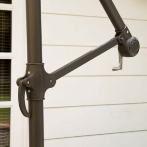 - Stands on aluminum iron frame with a waterproof polyester shade
