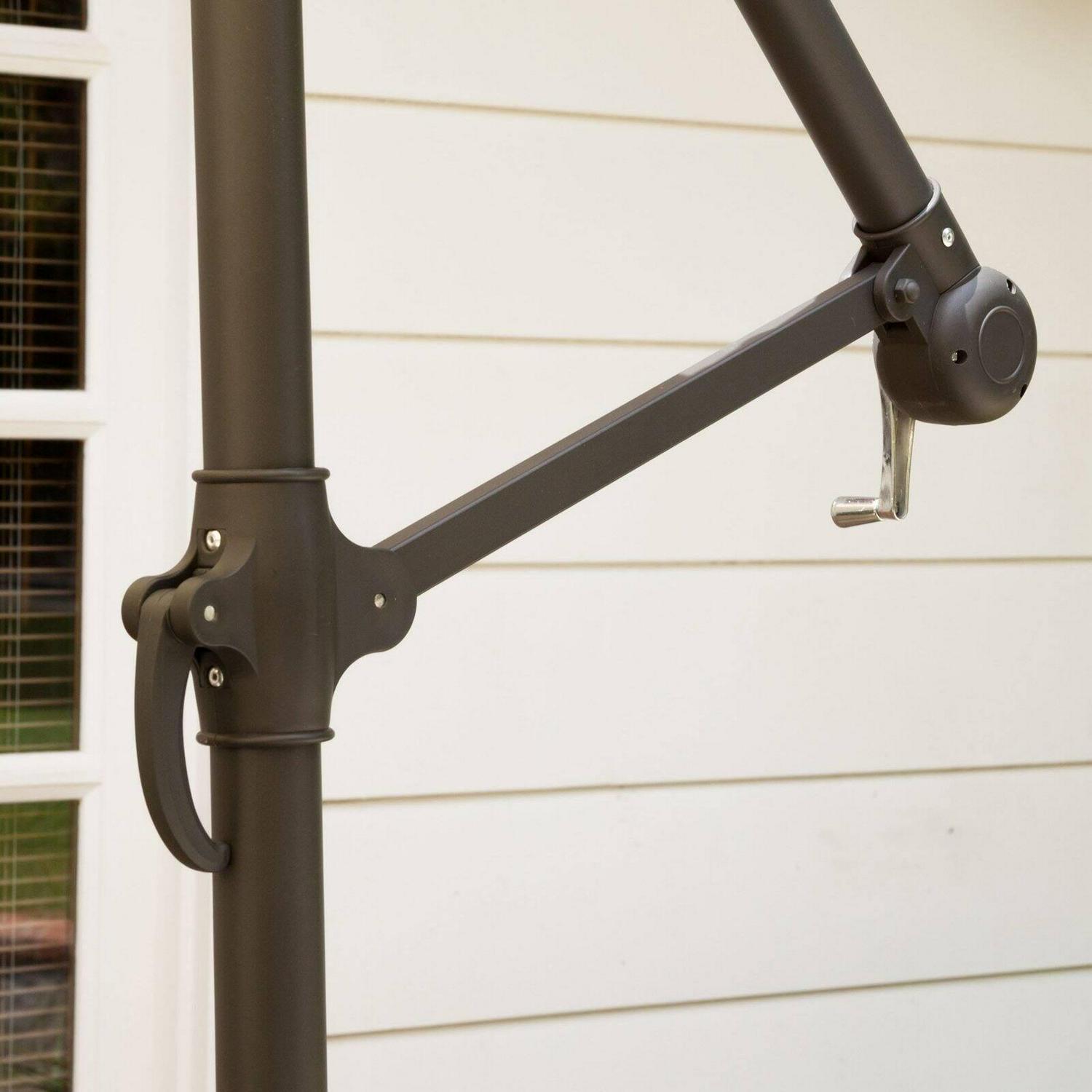 Tahiti Outdoor Beige Cantilever Patio Canopy Umbrella & Base The Tahiti Sun Canopy Umbrella makes a perfect shade solution for you and your guests. Function and form go hand in hand with this durable piece, designed to give you all of the benefits of being outdoors at no cost to comfort. This canopy pivots easily to provide shade from any angle whether it be for your lounging or dining. A must have piece for those summer gatherings.