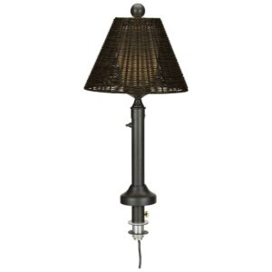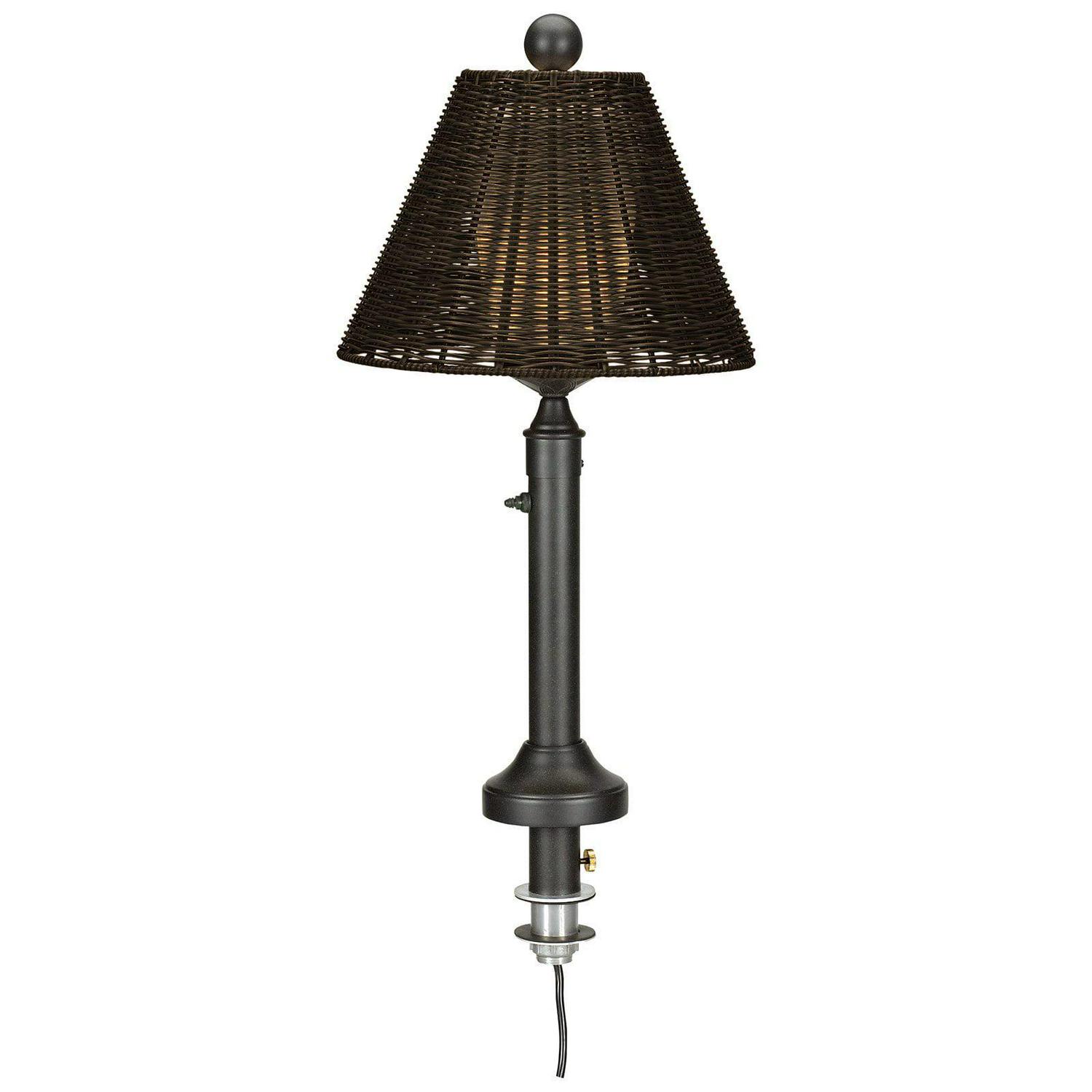 Add light instead of shade to your patio table with the Thati Outdoor Patio Table Umbrella Lamp. This unique lamp accommodates most standard patio tables with an umbrella hole up to 3-inches. If your table sits in a spot where an umbrella isn’t necessary, this is a unique and charming alternative. Constructed of weatherproof materials, starting with the all resin base in a dark bronze finish, this lamp is made for the outdoors. The shade is all-weather, hand-woven PVC wicker and is available in your choice of Walnut or Antique Honey. An unbreakable polycarbonate light bulb enclosure protects the standard 100 watt bulb (not included) from any damage. Some simple assembly is required. Patio Living Concepts Incorporating aesthetics, function, and quality from the initial design phase to the finished product, Patio Living Concepts excels in creative product design