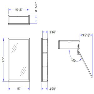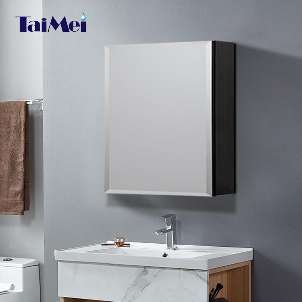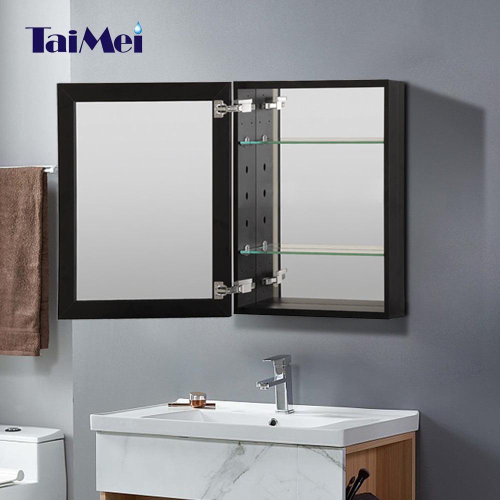 Taimei DIY Wall Frameless Mirror Medicine Cabinet 16 Wx20 Hx4.5/8a D (MMC1620-BL) with Beveled edges|Color Black|Bathroom Mirror Cabinet with 2 Adjustable Glass Shelves|Storage Cabinet by FOCA US