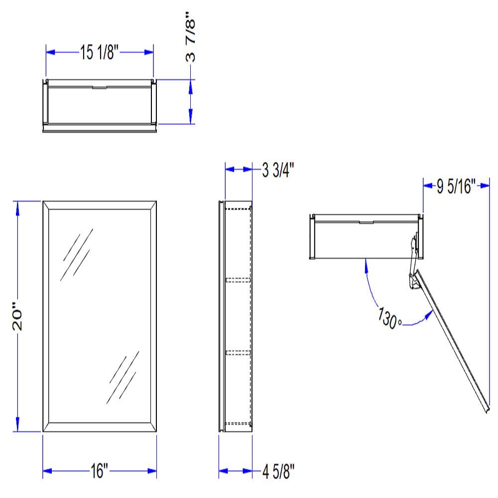 5. Polished beveled edge frameless mirrored door is reversible for left or right hand opening, fully mirrored inside the cabinet provides superior visibility