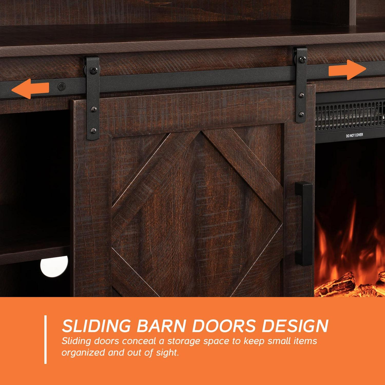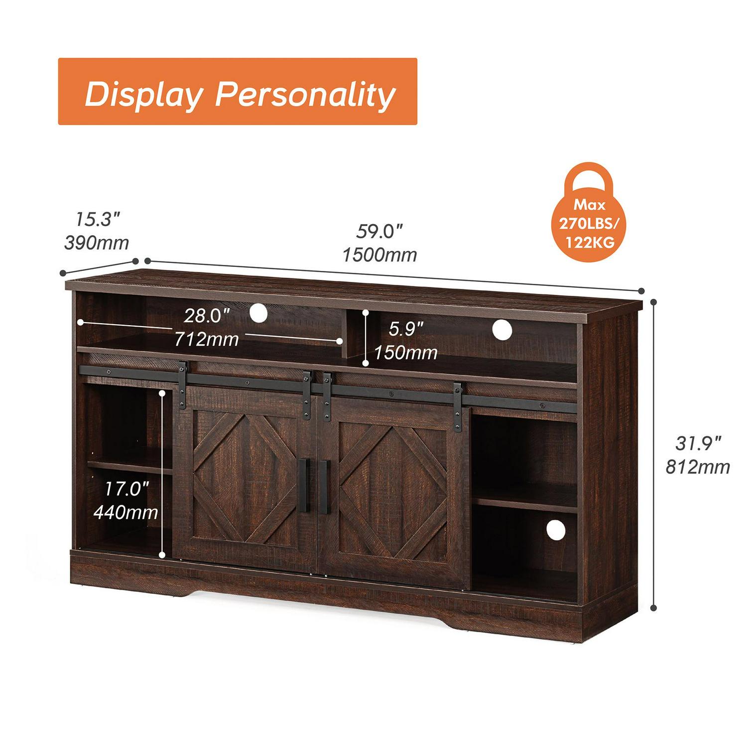 – Classical Design with Sliding Barn Doors The TV stand provides abundant storage with two cabinets and one adjustable shelf in the middle.