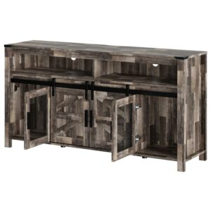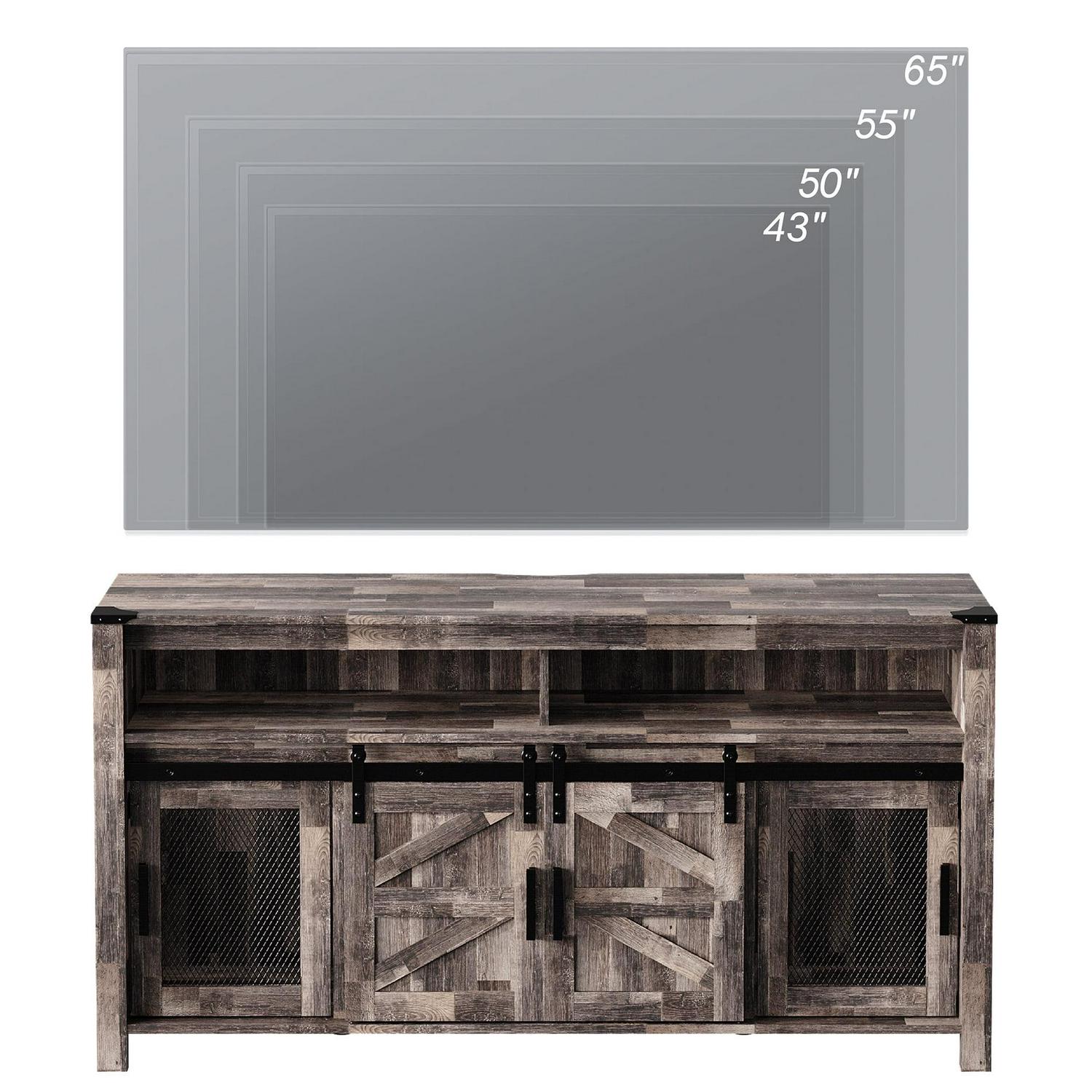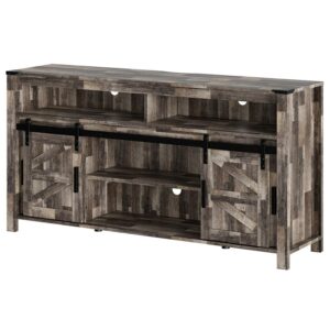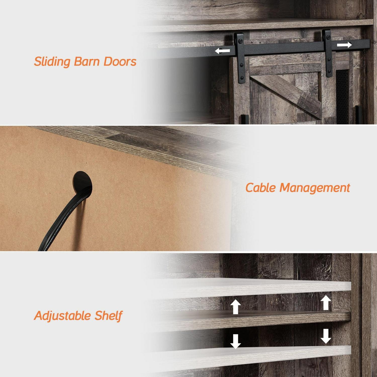 – Sliding barn doors on the TV stand for convenient access to cabinets while space-saving. You can also choose to slide the door to any side of the TV console for a clean, organized look.