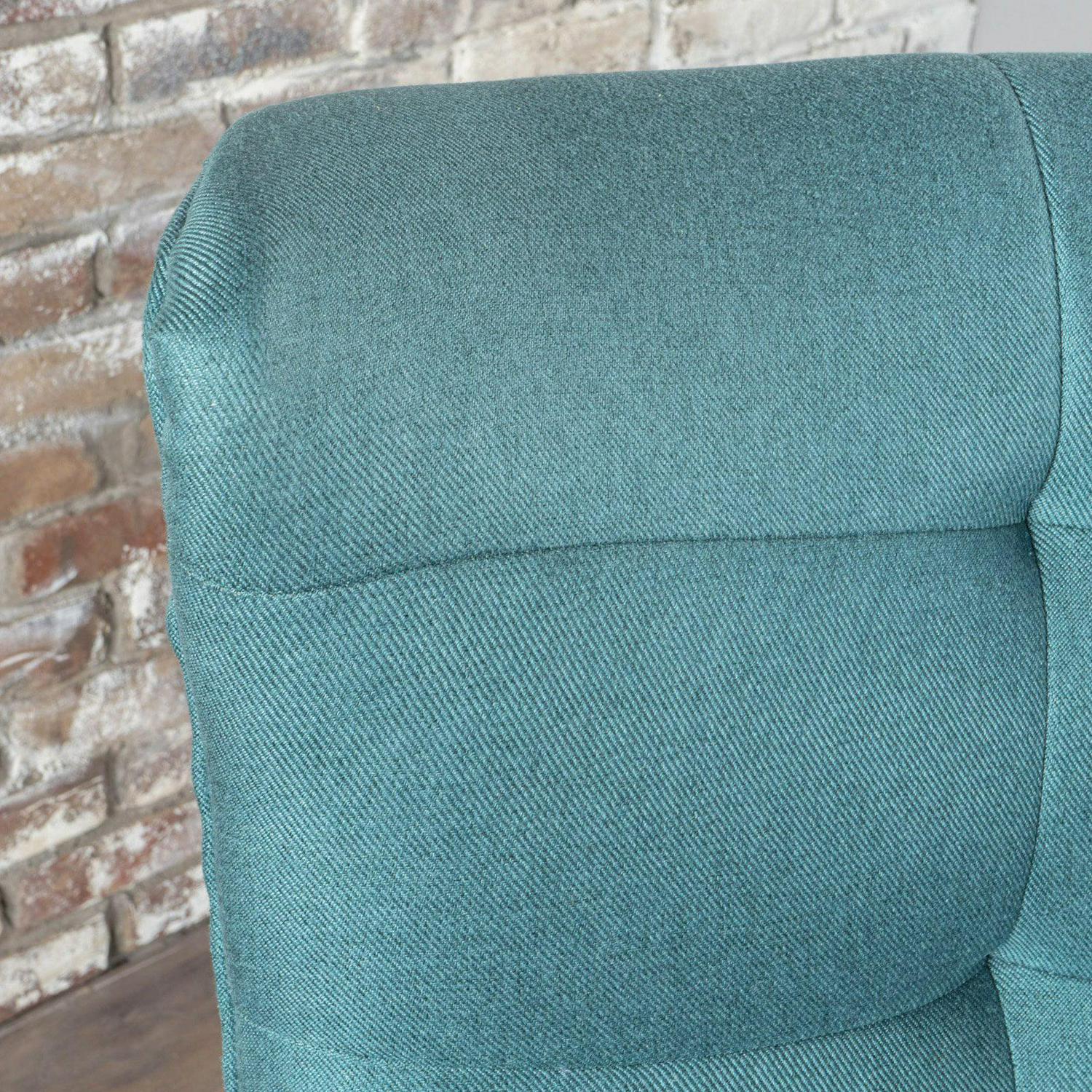 - Dark teal polyester upholstery