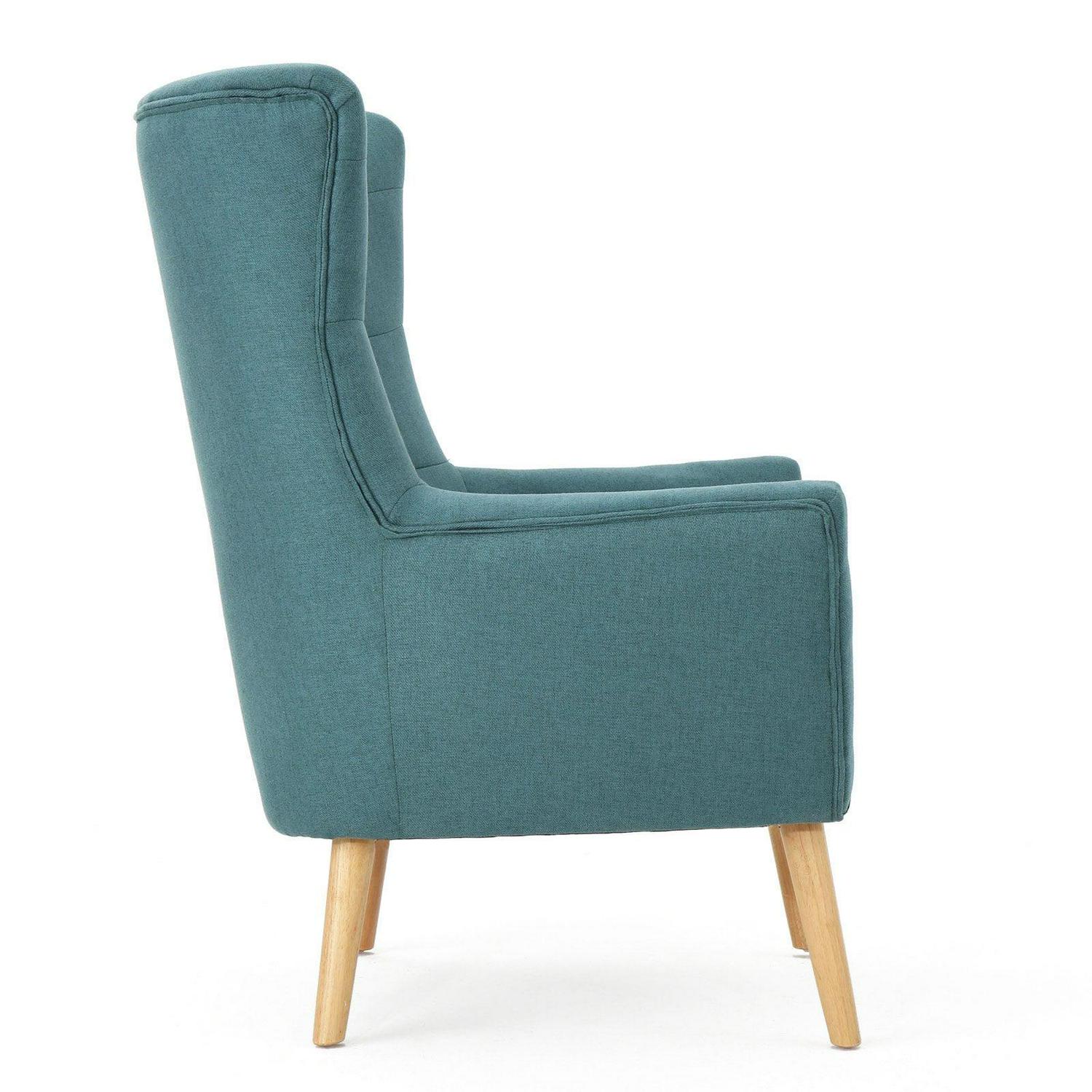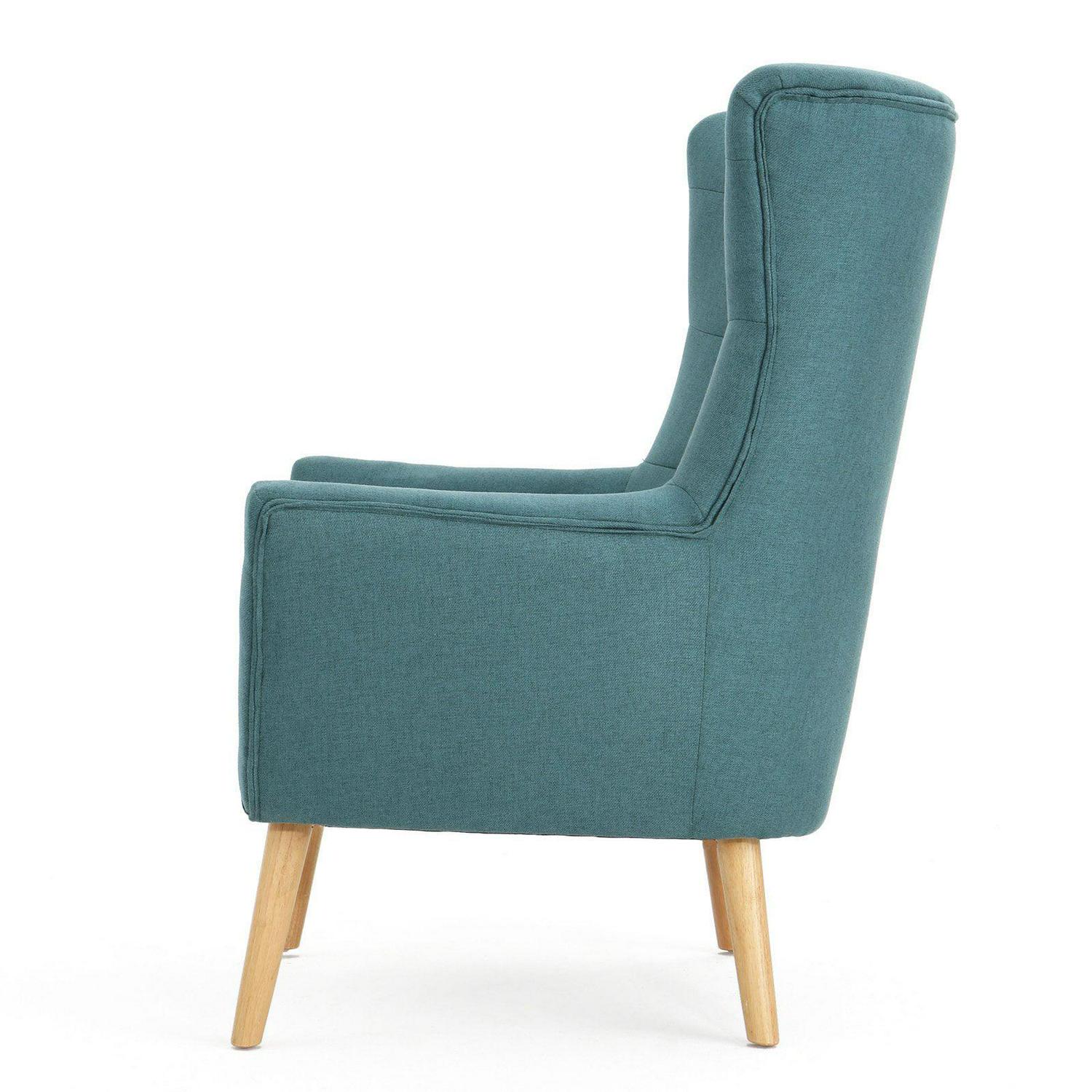 The handsome silhouette and playful color of the Tamsin Dark Teal Fabric Mid Century Club Chair make it a welcomed addition to any room in your home. It features a tufted back, low arm rests, and gently tapered legs for a look that is chic and casual at the same time. Pair with a throw blanket or pillow to finish the look.