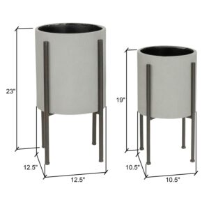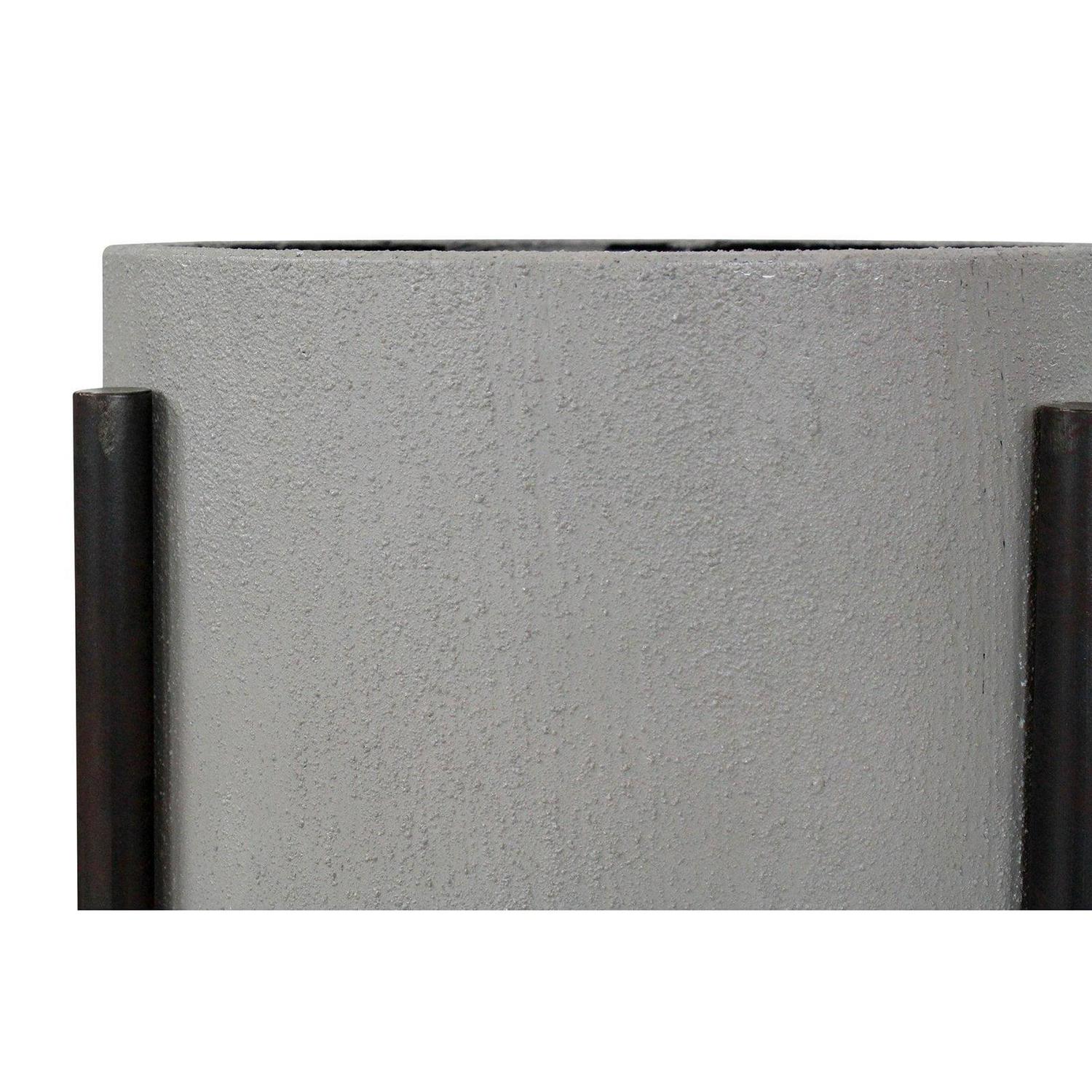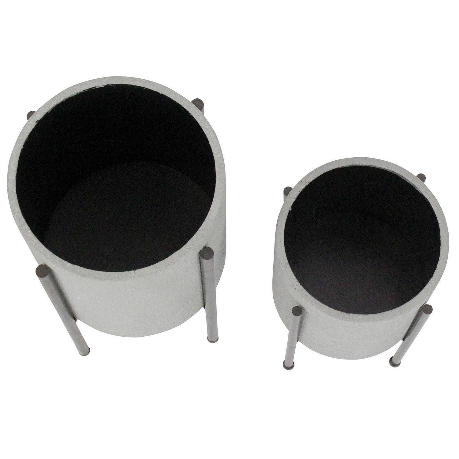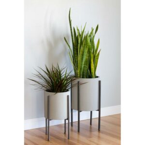 Showcasing mid-century modern design inspiration, the Tania metal planters make a stylish addition to any modern home. Each circular pot is finished in a light-gray, stucco-like texture and sits on a dark metal base.