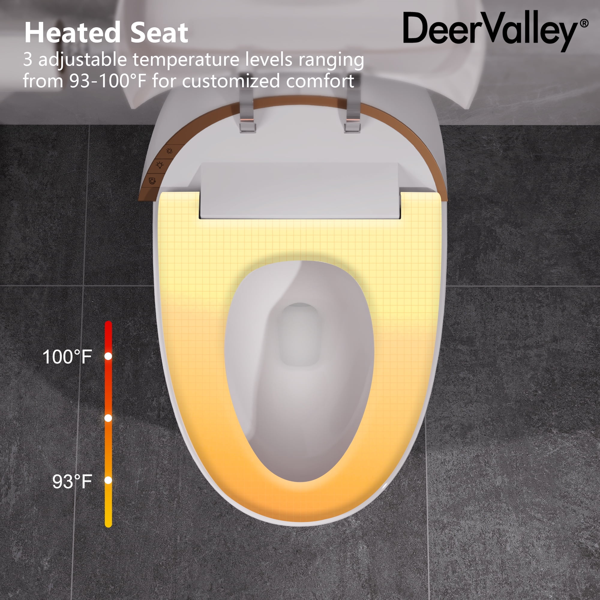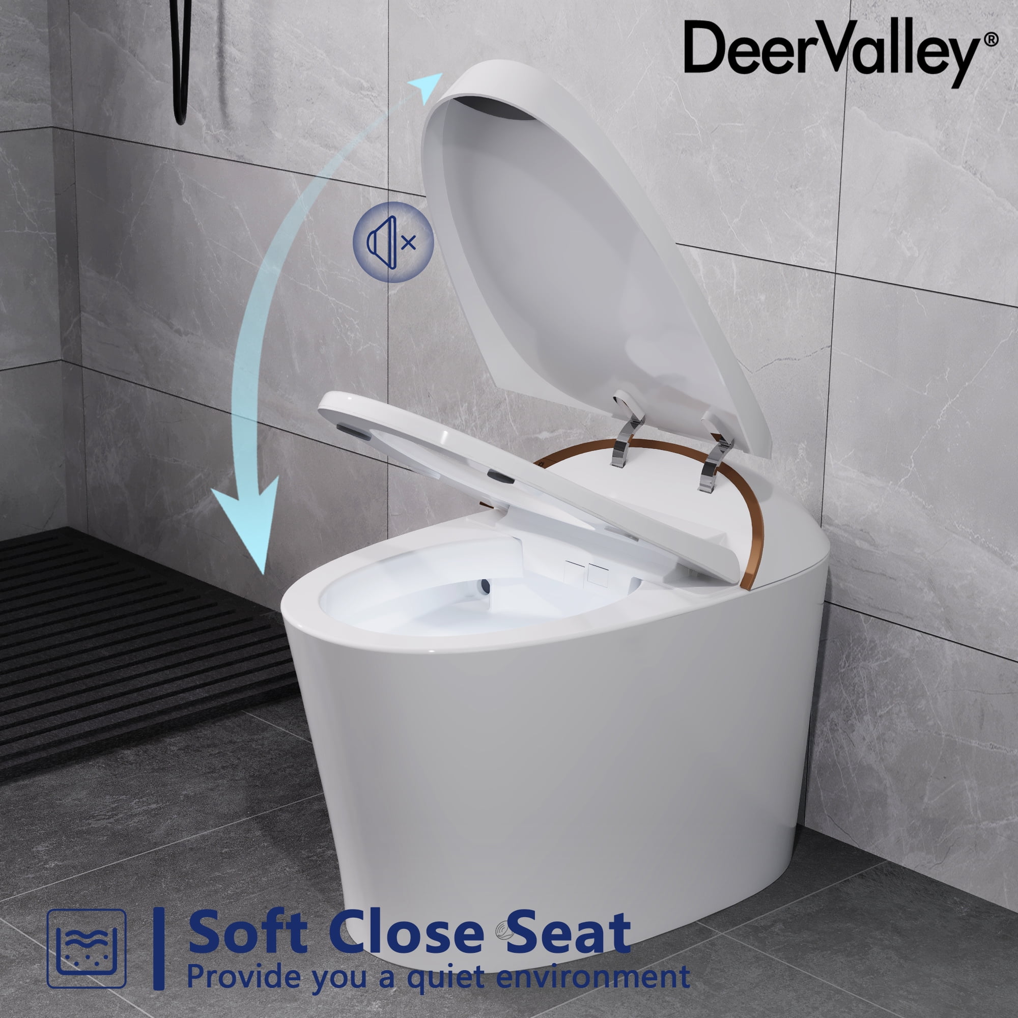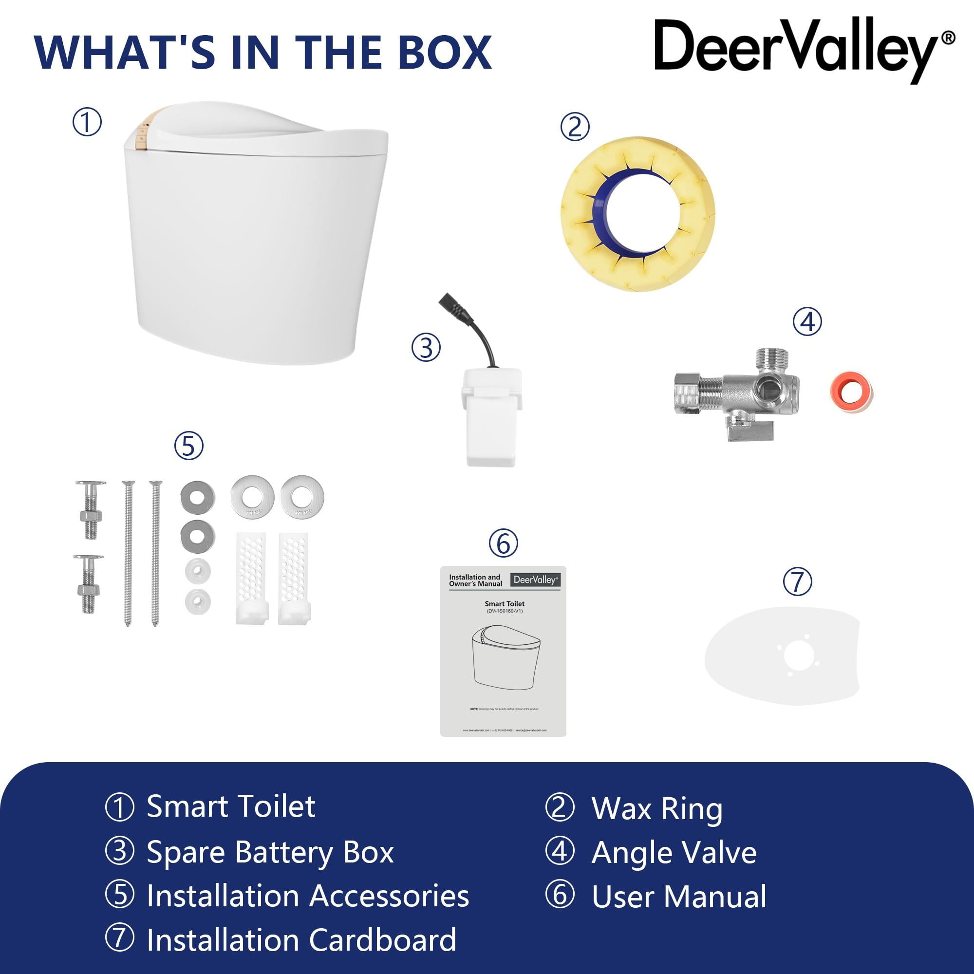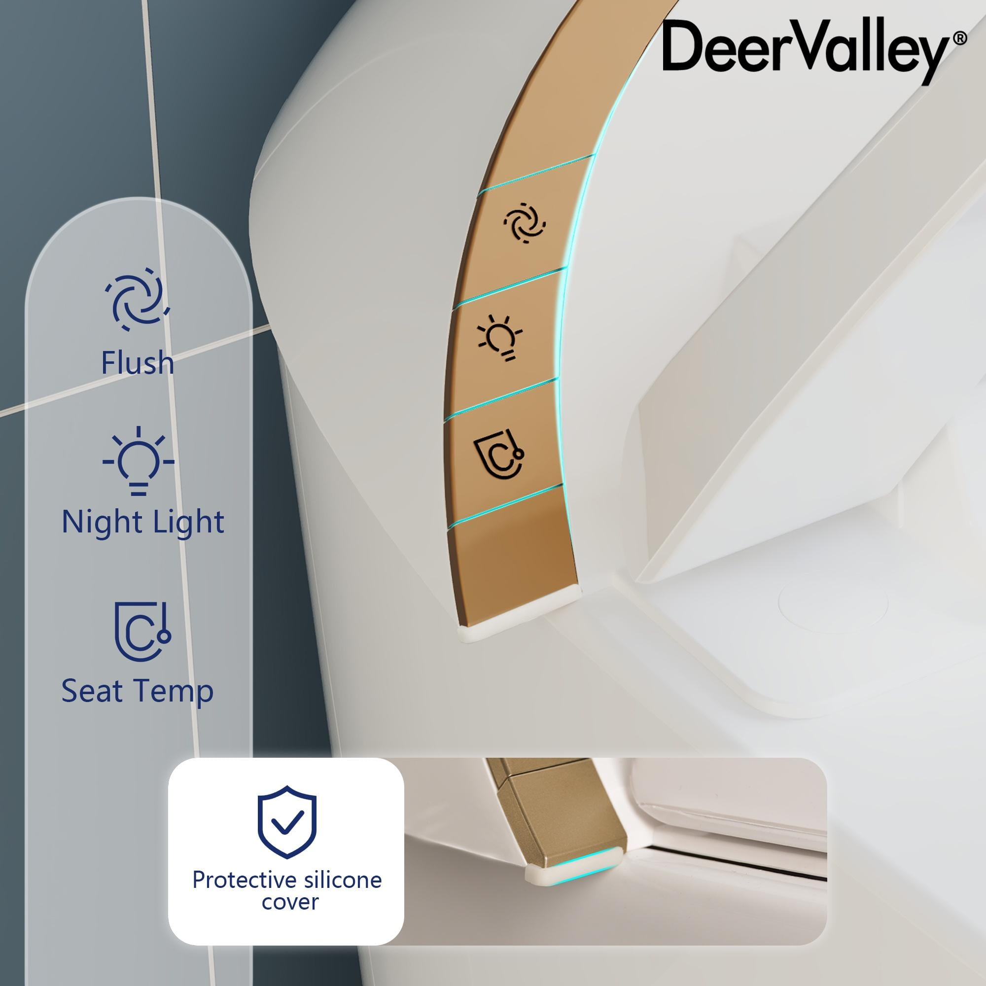 Experience unmatched comfort and convenience with the DeerValley DV-1S0160-V1 Smart Toilet. This innovative toilet combines a heated seat and hands-free operation for an elevated bathroom routine. Its tankless design features auto deodorization, ensuring a fresh ambiance after each use. With sleek contours and a Nano-glazed surface, maintenance is effortless while maintaining timeless aesthetics. The powerful flush system ensures optimal performance, while the soft night light and quiet-closing lid and cover add convenience and comfort for nighttime visits, making every trip to the bathroom a pleasure.
