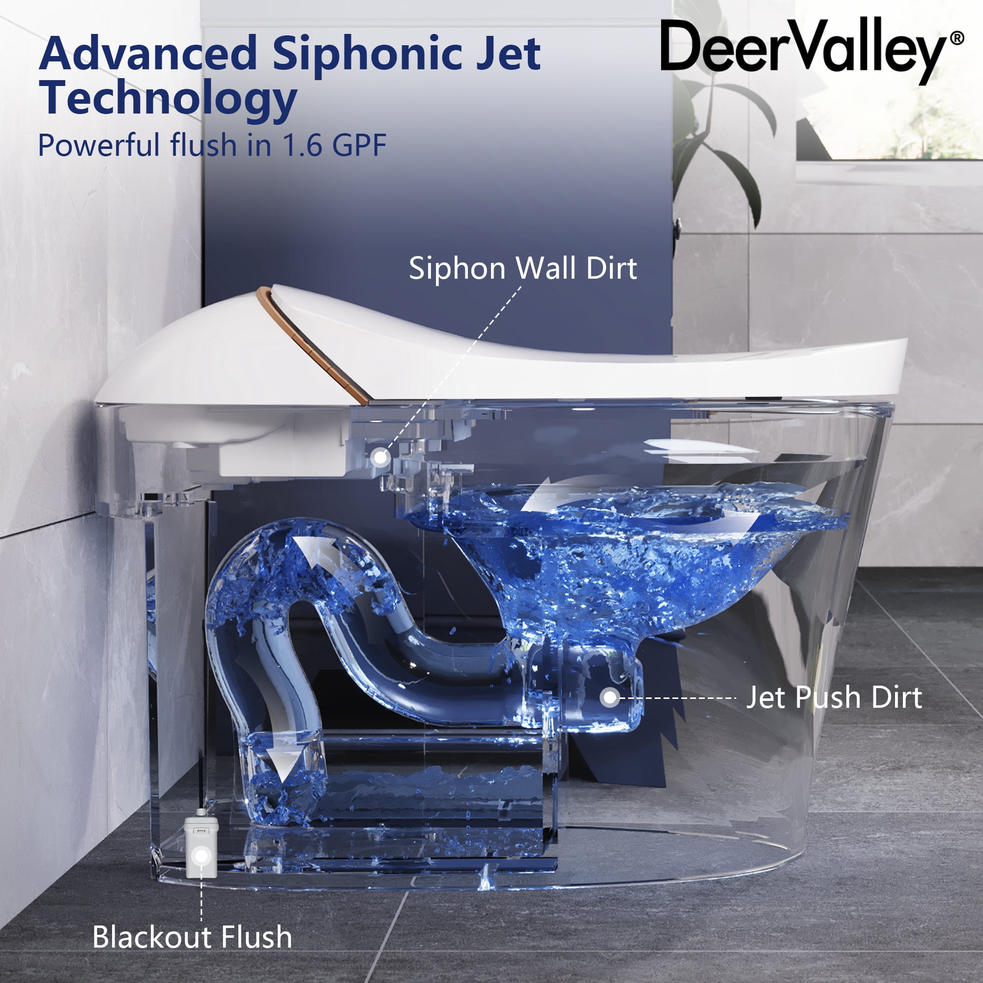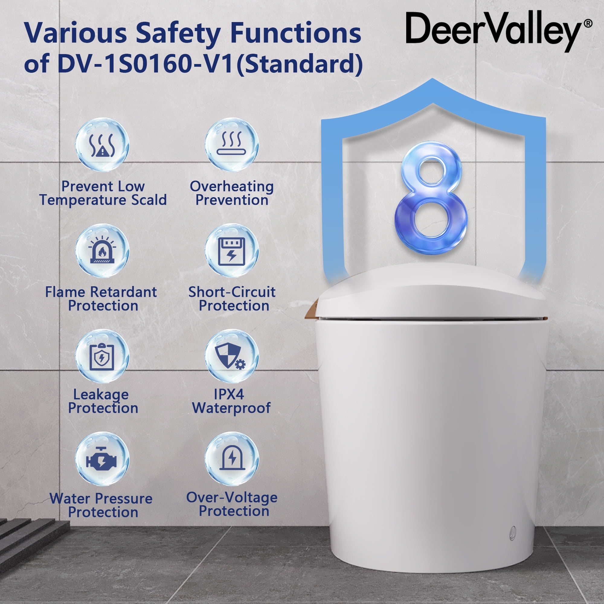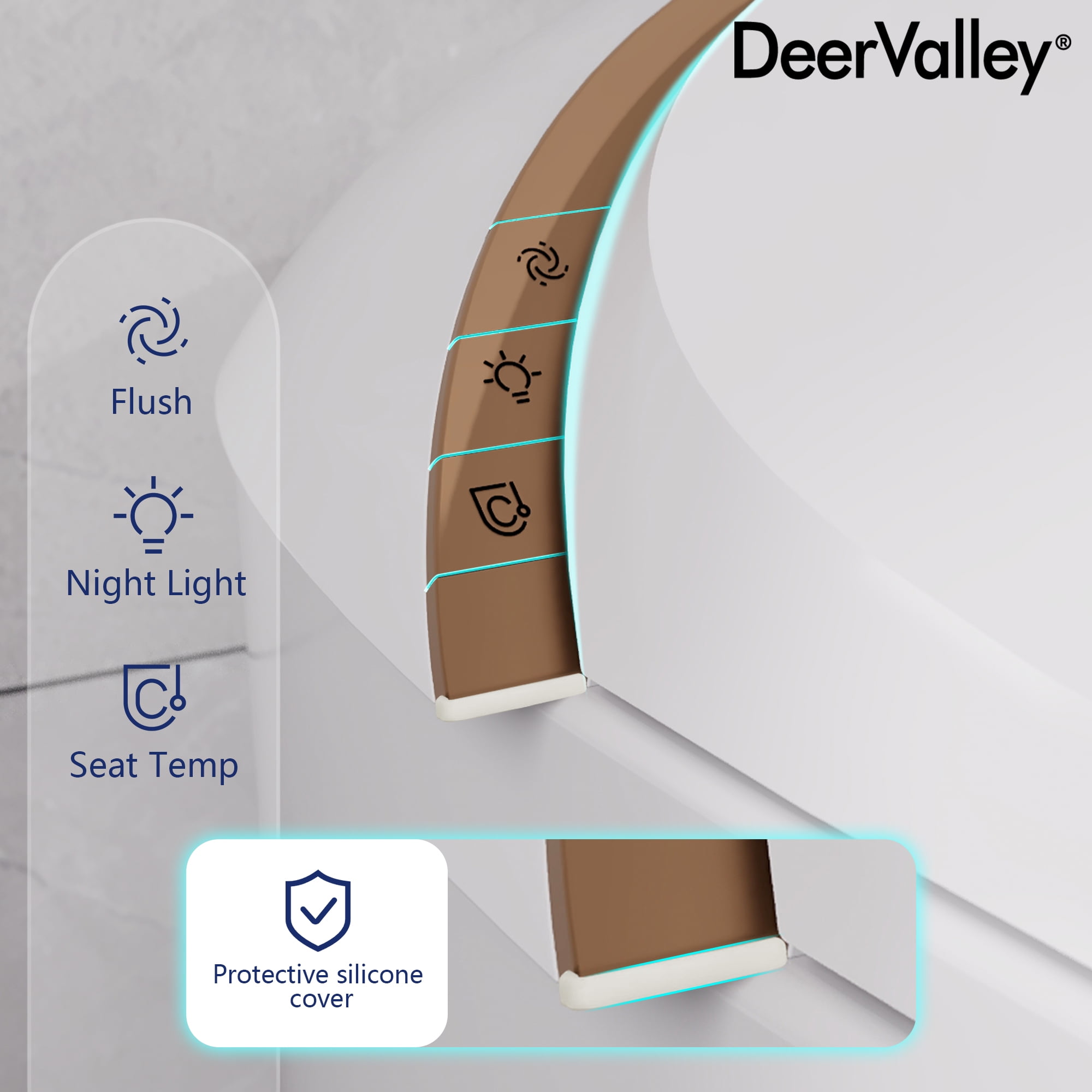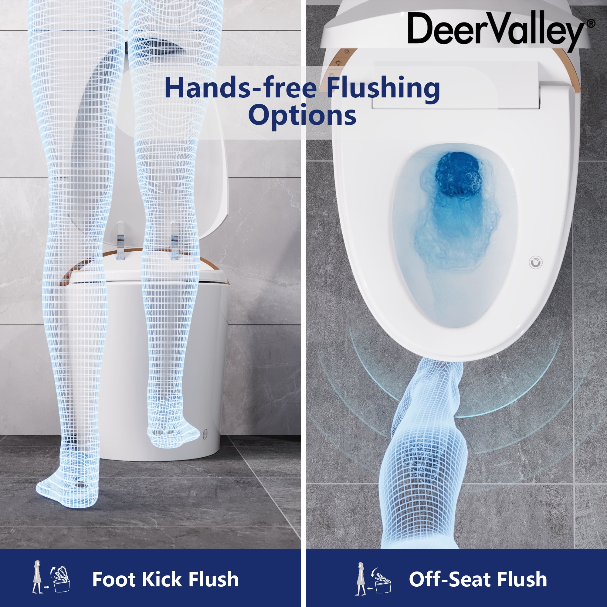 Experience unmatched comfort and convenience with the DeerValley DV-1S0160-V1 Smart Toilet. This innovative toilet combines a heated seat and hands-free operation for an elevated bathroom routine. Its tankless design features auto deodorization, ensuring a fresh ambiance after each use. With sleek contours and a Nano-glazed surface, maintenance is effortless while maintaining timeless aesthetics. The powerful flush system ensures optimal performance, while the soft night light and quiet-closing lid and cover add convenience and comfort for nighttime visits, making every trip to the bathroom a pleasure.