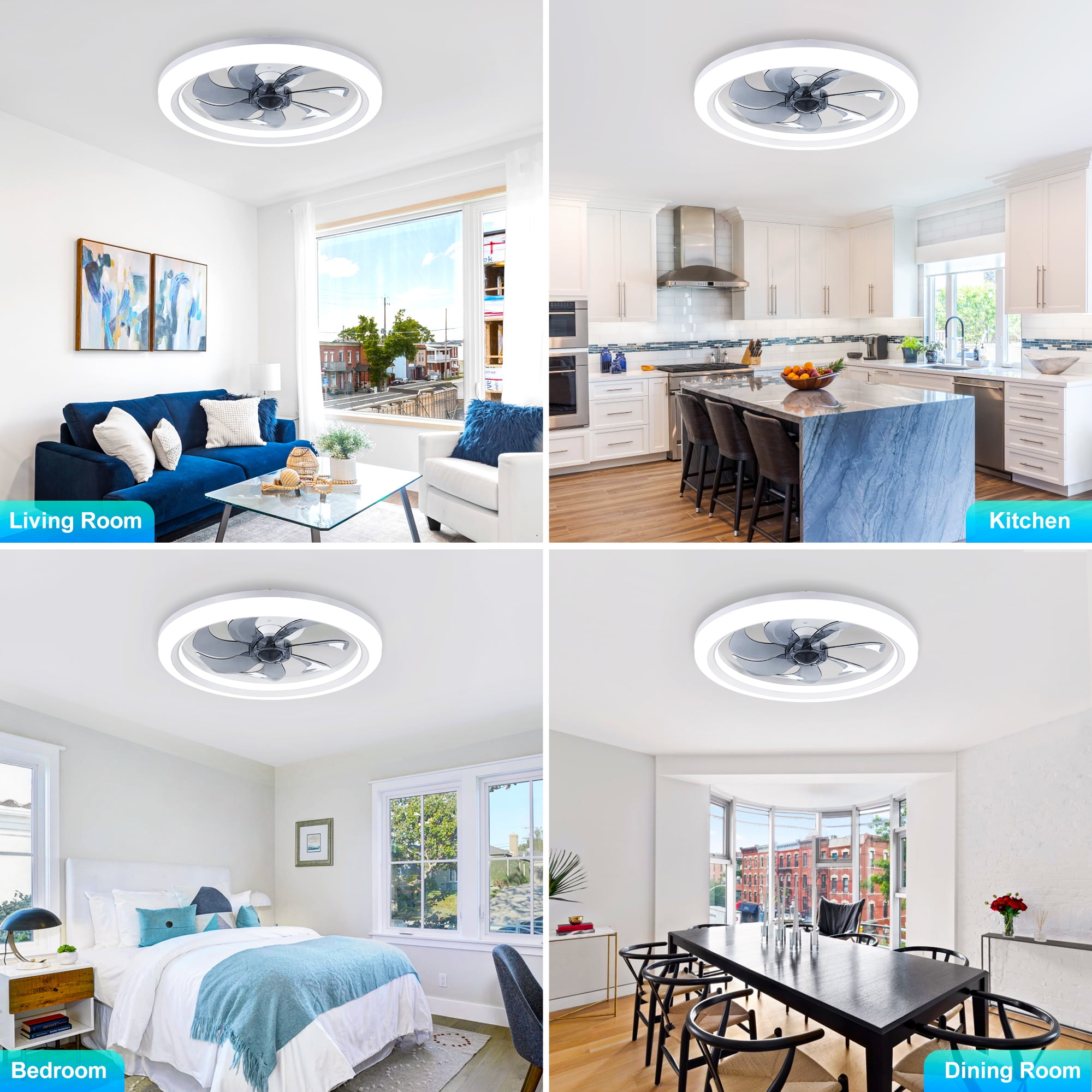 This is a semi-enclosed low profile fan light that combines a fan and a lamp. You can easily adjust any function of the fan through the APP and remote control- Easy to adjust the 6 level fan speed, or adjust the brightness or color temperature. Low profile ceiling fan maintain the ideal comfort level, low noise, and does not wake people in sleep, and provide you with a comfortable sleeping environment. The 19.5″ ceiling fan is perfect for any indoor and covered outdoor space, living room, bedroom, child room, patio. Specification: Brand: Agtana Name: Low Profile Ceiling Fan with Light Model: FSD-A01 Material: Iron + Acrylic Size: 19.5”(Diameter) x 5.1”(Height) Color: White Irradiation area: 107sq.ft-215sq.ft / 10m² – 20m² (Lighting ) Control method: Remote Control / Wall Control / APP Wind speed: 6 Gears Number of Blades: 7 Battery: Not included Voltage: 110V Total wattage: 60W Fan wattage: 20W Light wattage: 24-48W (2900-6500K) Noise: 35dB Installation type: Embedded Installation Recommended location: Indoor and covered outdoor space, living room, bedroom, child room, patio, dining room, kitchen, office Package Included: 1 x Fan Ceiling Light 1 x Remote Control 1 x English Manual