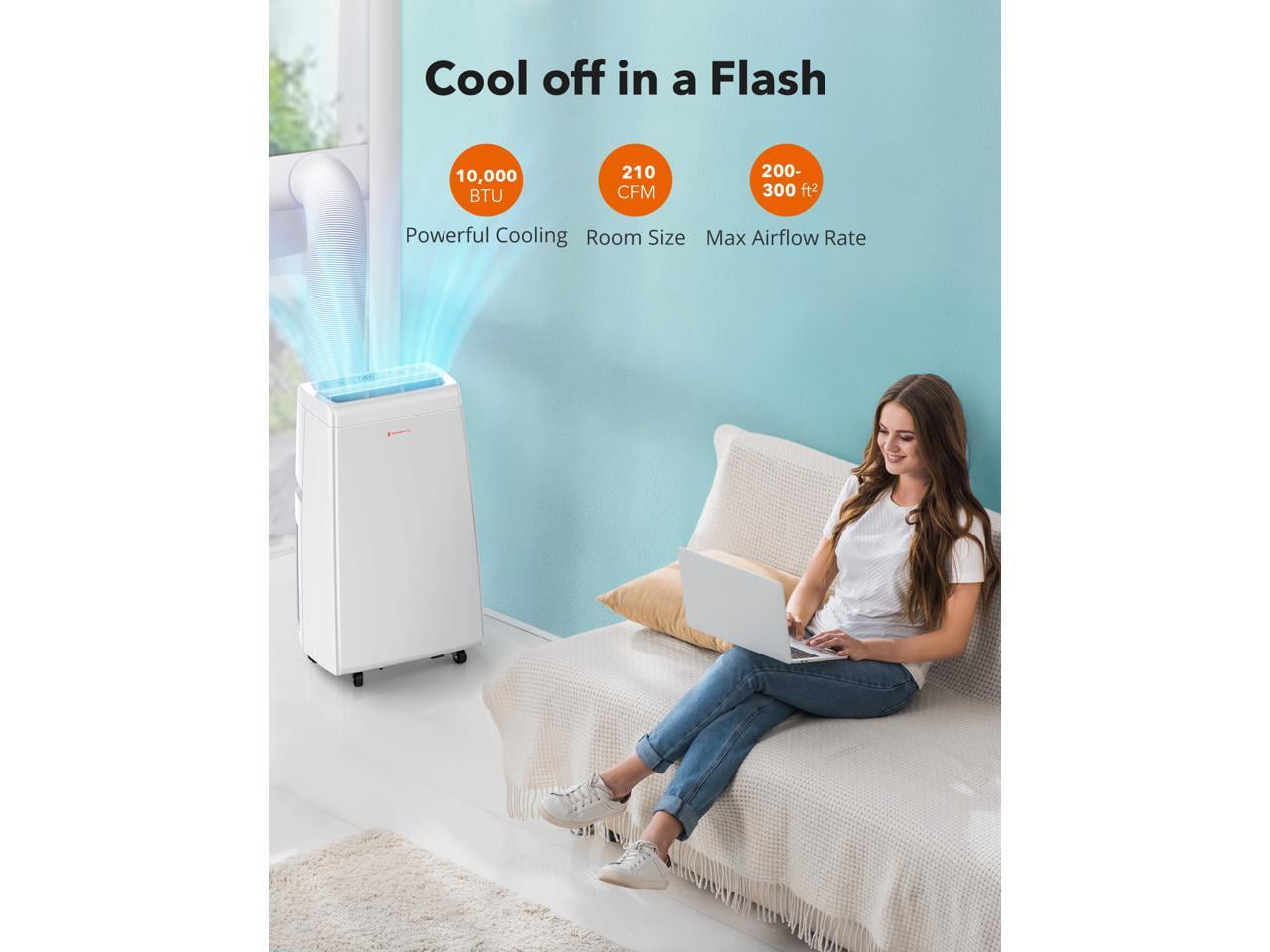 - Powerful Cooler: With a 10,000 BTU ASHRAE (6,500 BTU DOE SACC) cooling capacity, the portable air conditioner efficiently and evenly cools spaces up to 300 sq. ft. with a maximum airflow output rate of 210 CFM