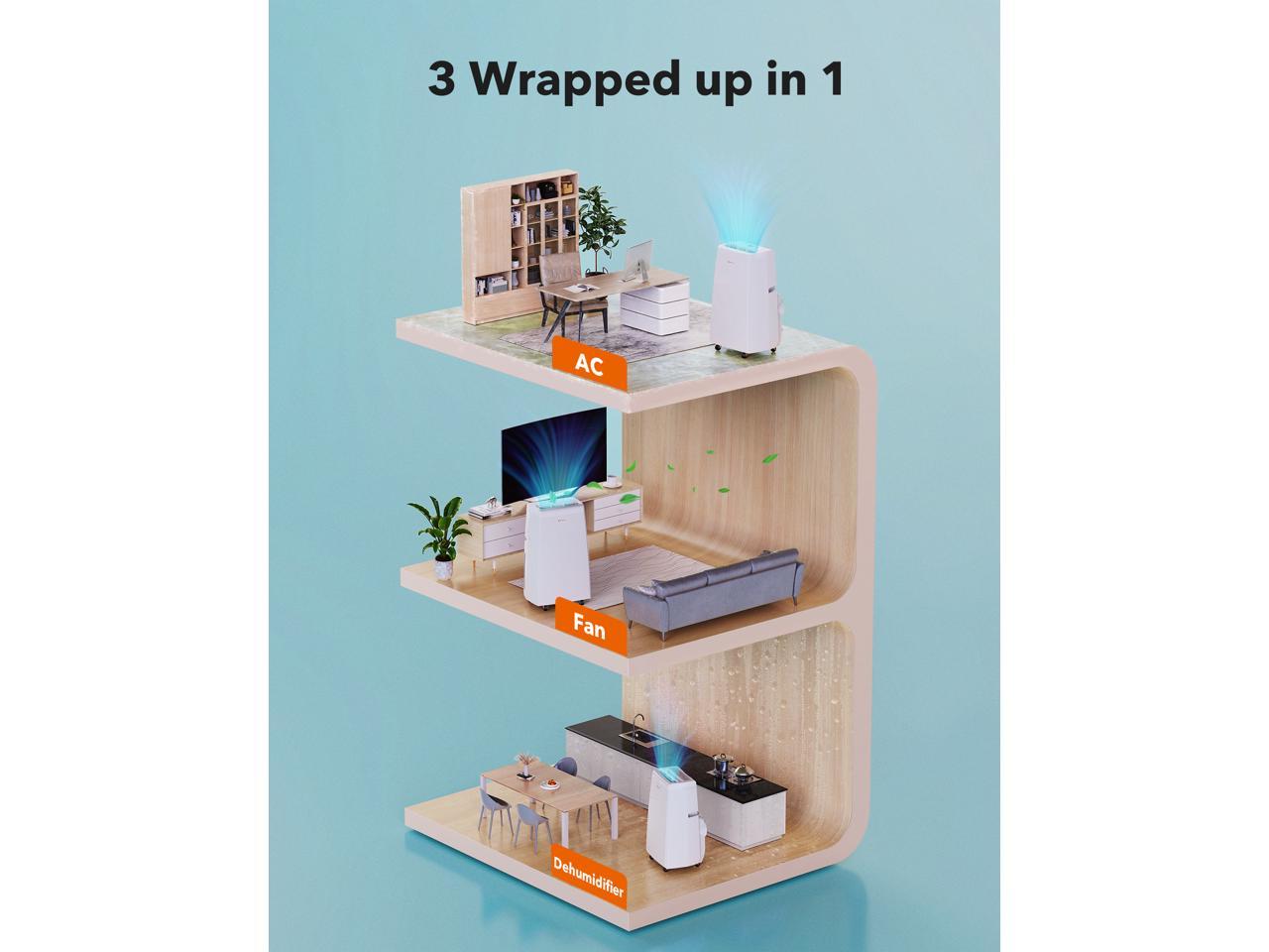 - All-in-One Unit: The portable air conditioner serves you all year round as an AC to beat the summer heat, as a dehumidifier to reduce humidity on muggy days, and as a fan to circulate indoor air anytime