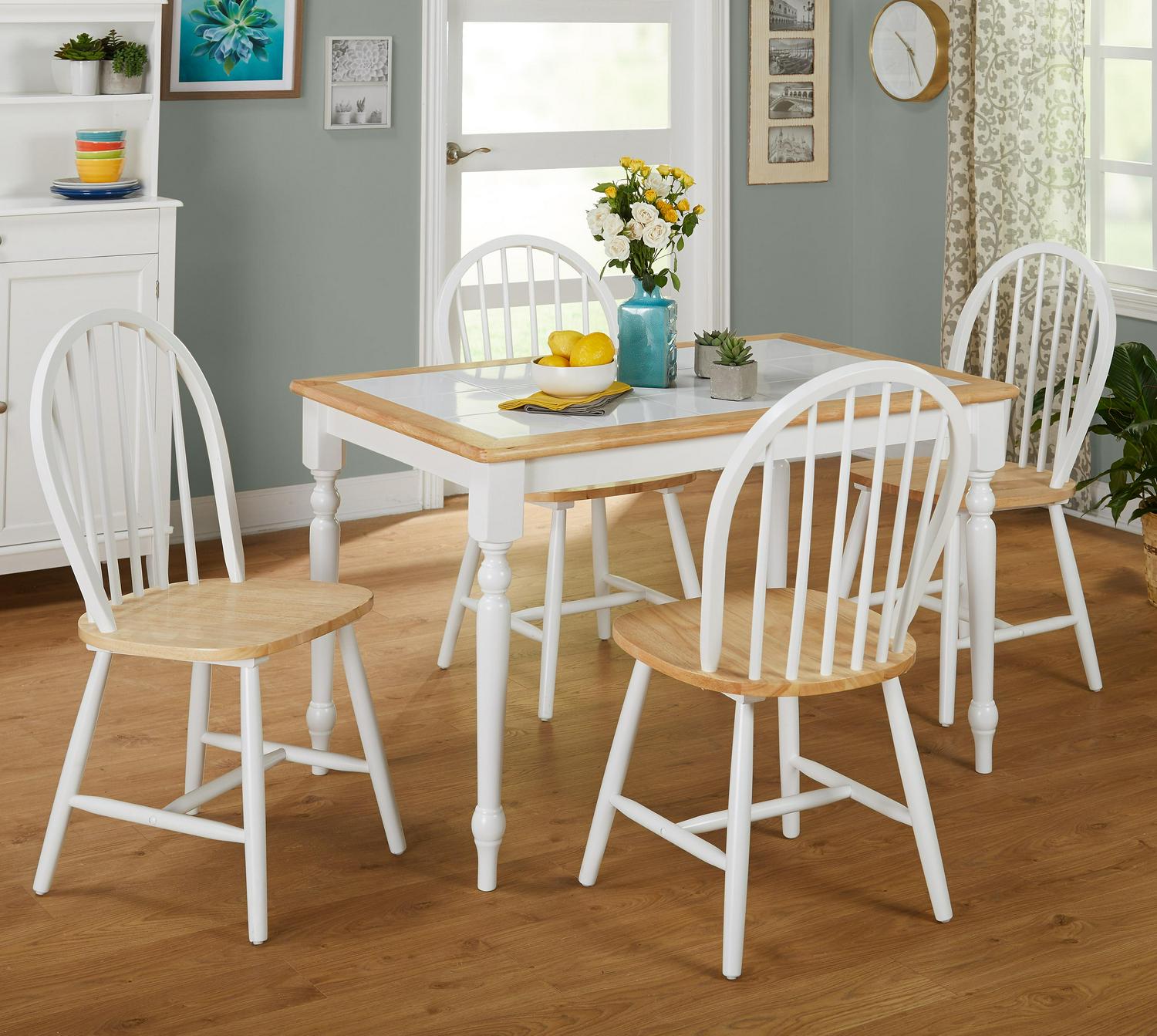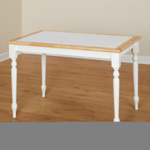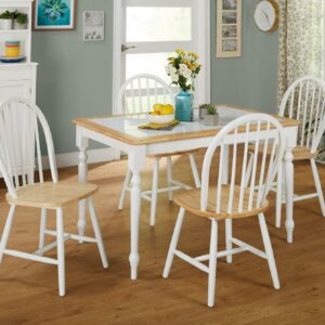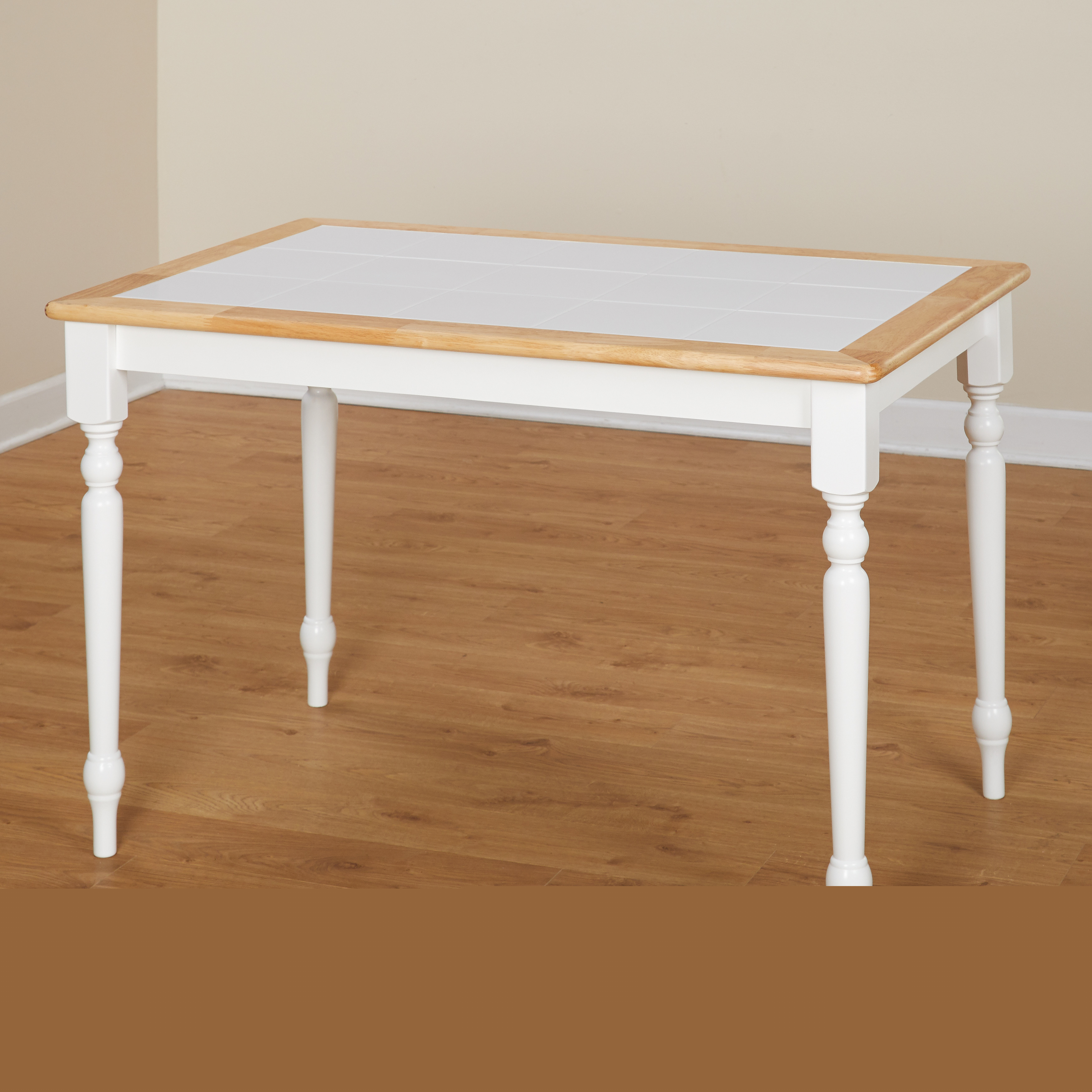 Add country charm to your dining room with this Tara Tile Top Table. This item of furniture features wood in a light natural color that goes well with the simple hue of the top. This tile top dining table in white/natural has stylish turned legs. This classically chic dinette piece will suit both traditional and farmhouse décor styles.