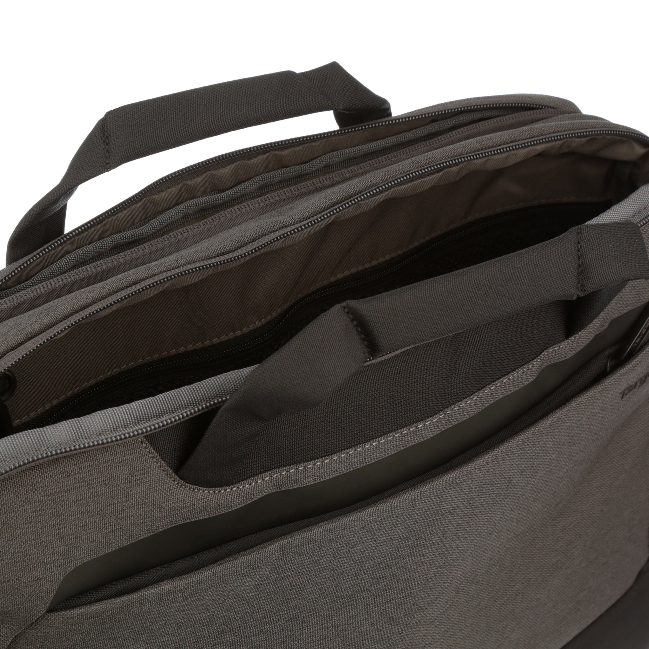 Targus 15.6″ Cypress Briefcase with EcoSmart Light Gray – TBT92602GL Made from 20 recycled water bottles 2-compartment design with workstation provides ample room for your gear Front stash pocket allows for quick access to small accessories Padded shoulder strap for a comfortable carry Luggage pass-through trolley strap Soft-touch carry handles