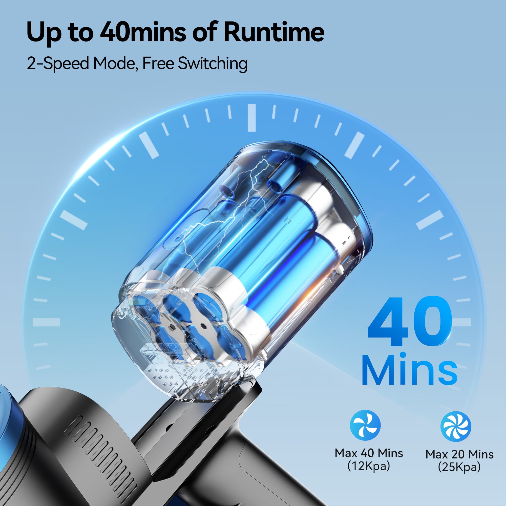 【CLEAN HOME ON A SINGLE CHARGE】Cordless vacuum cleaner comes with a detachable 2200mAh long-lasting battery, which provides up to 40 mins runtime on eco mode, and 20 mins on Max mode. The detachable and rechargeable vacuum can clean the whole house on a single charge 【BETTER CLEANING RESULTS】Our stick vacuum provides 25Kpa max powerful suction, lower noise, and longer service life with an upgraded brushless digital motor. This stick vacuum cleaner captures debris, dust, crumbs, pet hair, pet food, cat litter, and other messes on hardwood floors and carpets 【VARIOUS CLEANING WITH ONE HAND】With an ultra-lightweight main motor(2.1 lbs) and multiple accessories, it meets all your daily cleaning needs with just one hand. From cars to beds, furniture, curtains, sofas, corners, and more, this lightweight cordless vacuum is perfect for any space. Anti-tangle design keeps the vacuum cleaner gathering hairs effectively without tangling and saving your precious time and effort 【SMART DESIGN FOR CONVENIENT OPERATION】The LED screen and 4 LED lights enhance convenience during the cleaning process. The LED lights and flexible 270° head assist in identifying and cleaning every nook and cranny, even in dimly lit areas. The clear screen displays suction levels and remaining battery power, ensuring you are always aware of the current status 【UPGRADED 5-LAYER FILTRATION SYSTEM】Carpet vacuum is equipped with a 5-layer filtration system and multi-cone cyclone. It thoroughly filters fine dust and microorganisms, preventing them from being released back into the indoor air, and allowing you and your family to breathe fresher air. This cordless vacuum is friendly to families with pets, children, or the elderly 【ONE CLICK EMPTY & EASY STORAGE】Say goodbye to dirty hands with our one-click dust cup emptying feature. The wall-mount design allows for easy storage of the pet hair vacuum cleaner and its accessories, keeping your home neat and organized. Plus, each TASVAC cordless vacuum cleaner comes with a 12-month professional after-sales service, providing you with the support you need