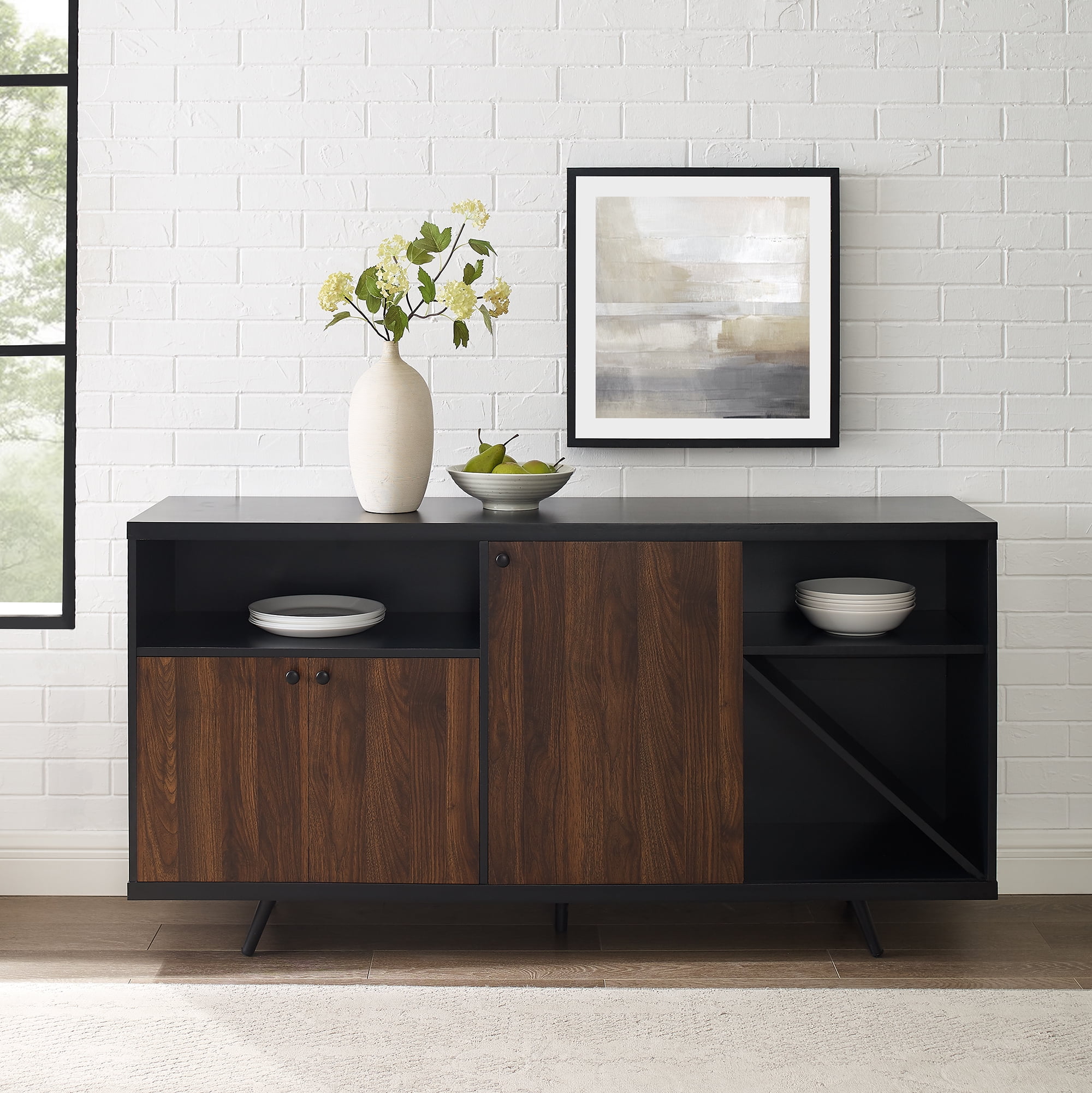 Tatum Modern A-Symmetrical 3-Door Black/Dark Walnut Sideboard by Manor Park