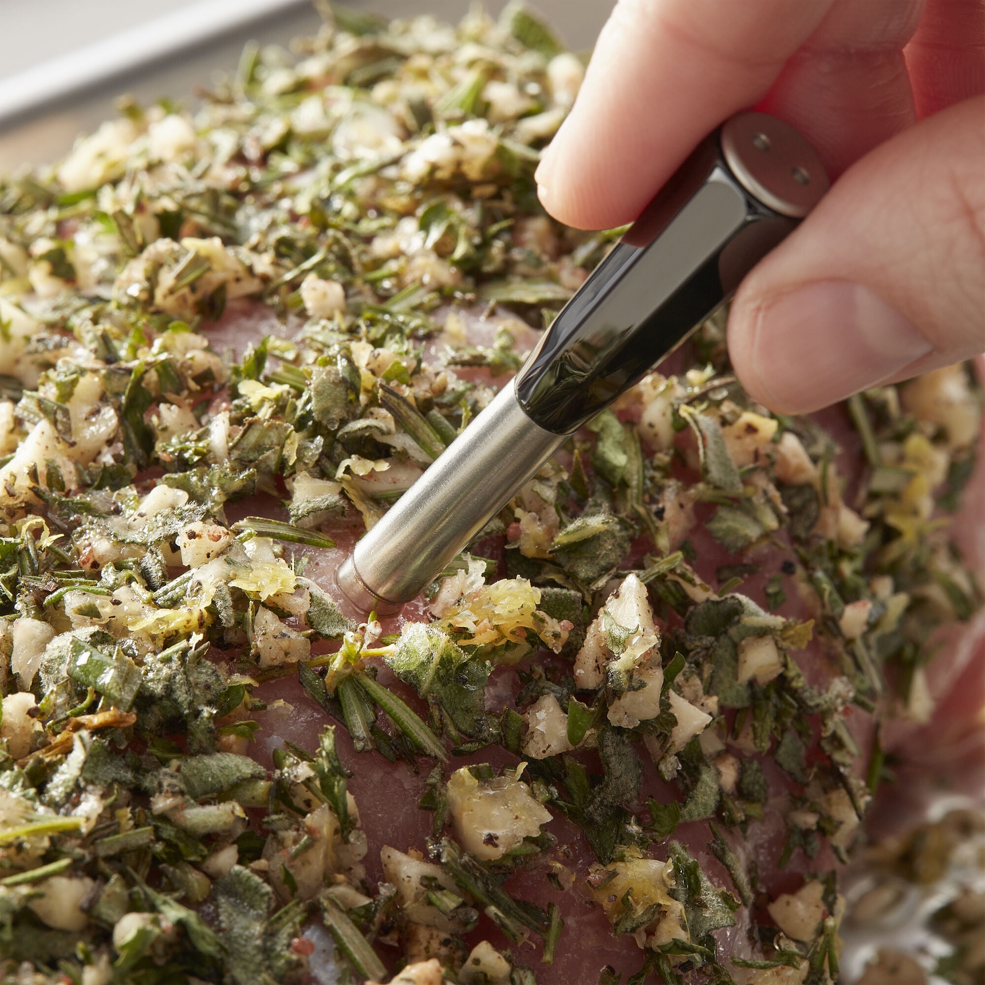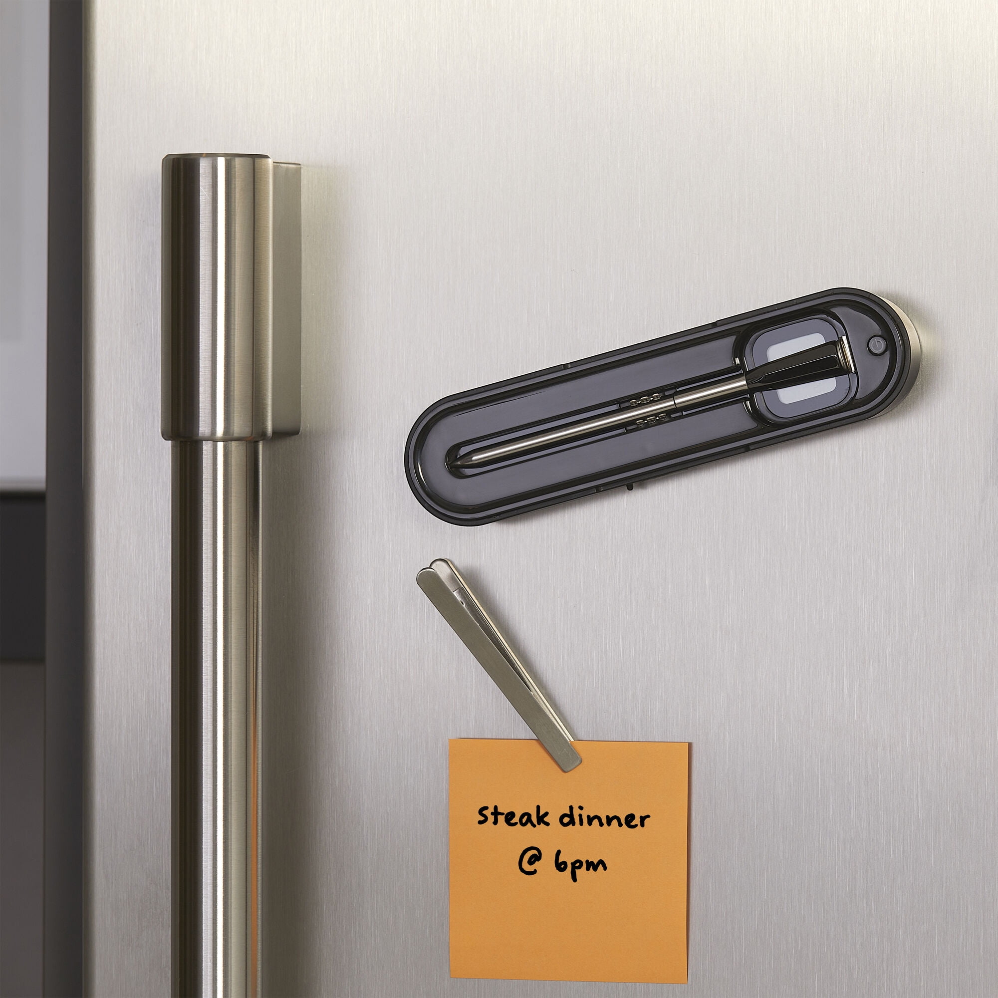 High-precision wireless meat thermometer technology enhances the cooking experience by providing accuracy, convenience and safety. A valuable tool for achieving consistent and delicious results when preparing various meat dishes. 100% wire-free thermometer probe is high heat safe and can be cleaned in the dishwasher, IPX7 certified to be fully waterproof. The thermometer tracks both internal and air temperatures that can either be viewed in the app on a smart device or on the digital LCD display on the docking station. The probe and docking case are rechargeable using the provided USB-C cord. Download the free SMARTTHERMO app from the Apple or Google Play stores.